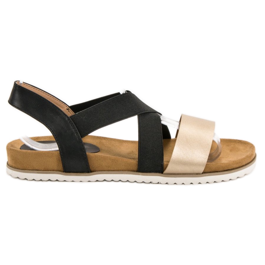 Die schwarzen Slip-On-Sandalen für Damen von Evento sind die perfekte Wahl für Frauen, die beim Alltags-Styling Wert auf Komfort und Stil legen. Diese klassischen Sandalen zeichnen sich durch ein elegantes, minimalistisches Design aus, das perfekt zu einer Vielzahl von Outfits passt. Ein dekorativer goldfarbener Gürtel verleiht Charakter, erregt Aufmerksamkeit und verleiht dem Ganzen Subtilität.