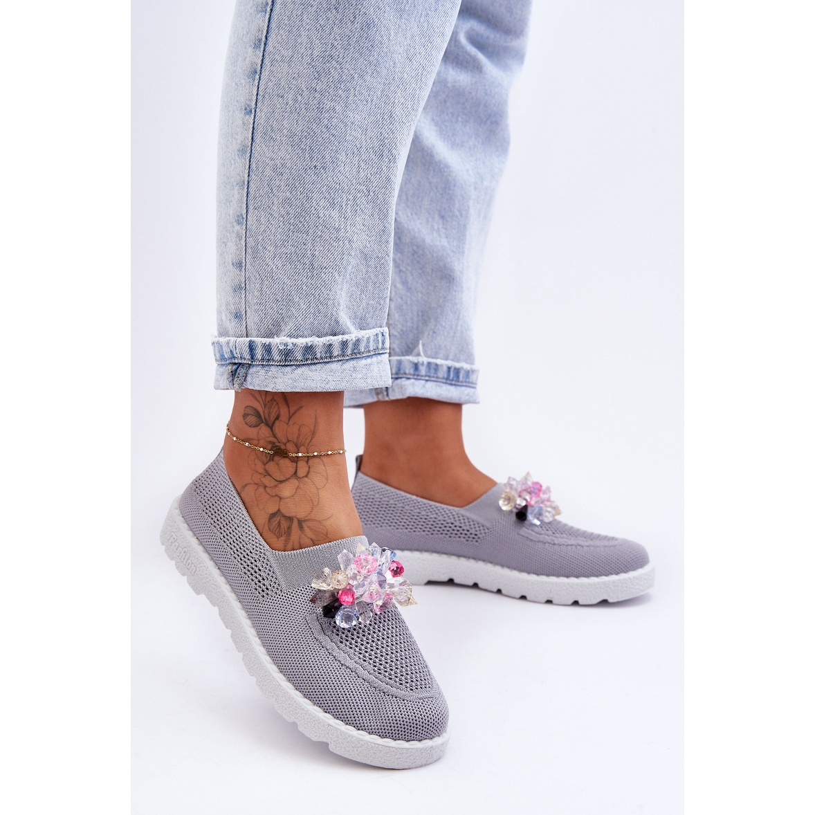 Stilvolle und komfortable Turnschuhe, die tägliche Stilisierungen beleben. Der klassische Schnitt wurde mit schimmernden Strasssteinen in verschiedenen Farben angereichert, was den Schuhen einen modischen, femininen Charakter verleiht. Das obere aus atmungsaktive Stoff mit Openwork -Einsätzen sorgt für den Komfort, den ganzen Tag zu tragen, und das Schiebendesign erleichtert es einfacher, schnell anzuziehen.