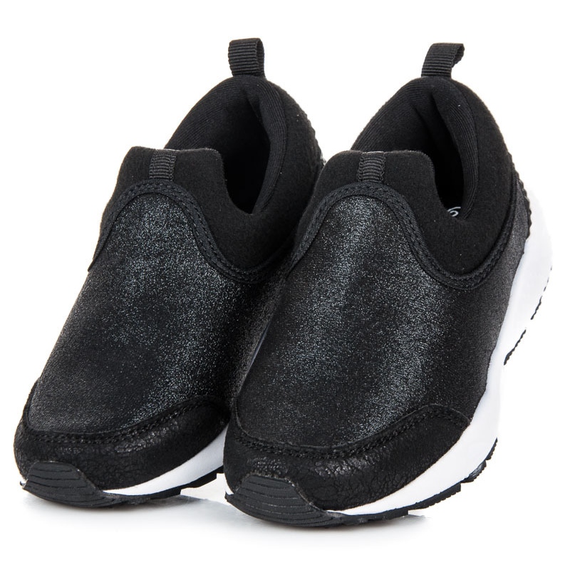 Elegante und praktische Slip-On-Sneaker für Mädchen der Marke Kylie. Durch das minimalistische, schwarze Design passen die Schuhe zu vielen Stilrichtungen – von Schule und Alltag bis hin zu Sport und Freizeit. Der leichte, luftige Stoff sorgt für ein angenehmes Tragegefühl im Alltag und die Profilsohle aus Gummi garantiert guten Halt.