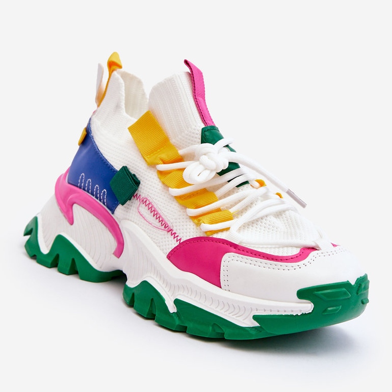 Das Modell zeichnet sich durch einen einzigartigen Slip-on-Schnitt mit zusätzlicher Schnürung aus, der das Anziehen und Anpassen an den Fuß erleichtert. Auf einem massiven, 3,5 cm hohen Plateau und einem flachen Absatz platziert, bieten die Sneaker eine hervorragende Dämpfung und Stabilität beim Tragen. Der weiche Kunstledereinsatz sorgt für Komfort auch bei längerem Tragen.