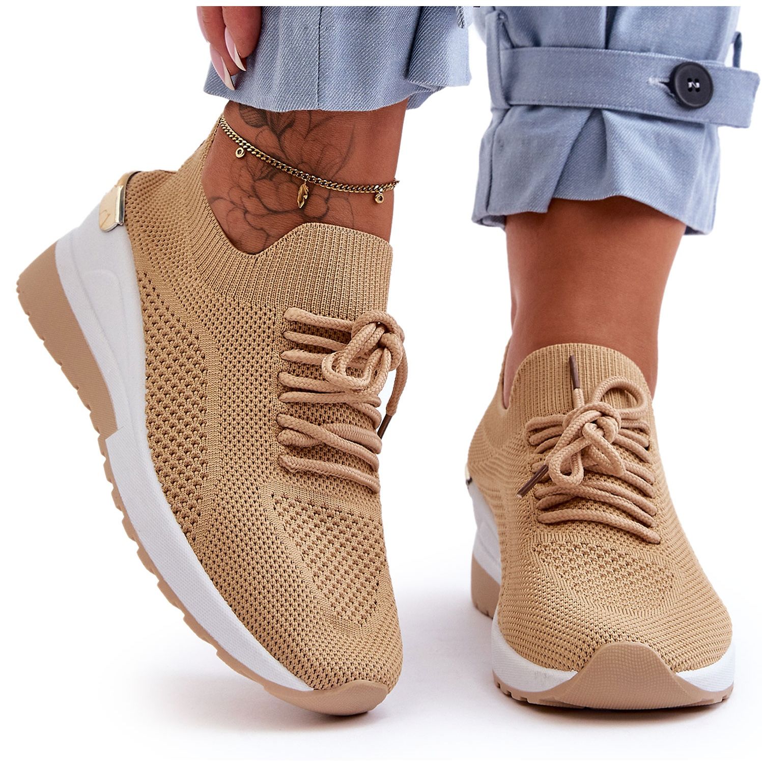 PG1 Material Slocked Sports Schuhe für Keil - Beige (Khaki) mit Gold