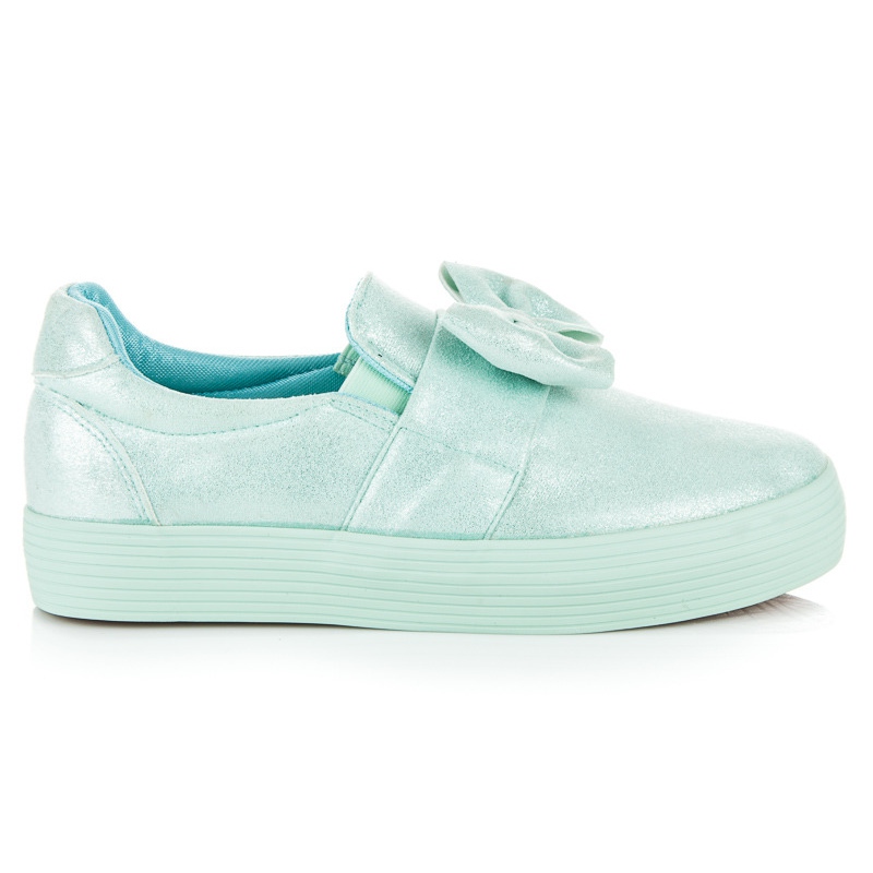 Details: Slipons auf der Plattform mit einem Bogen grün