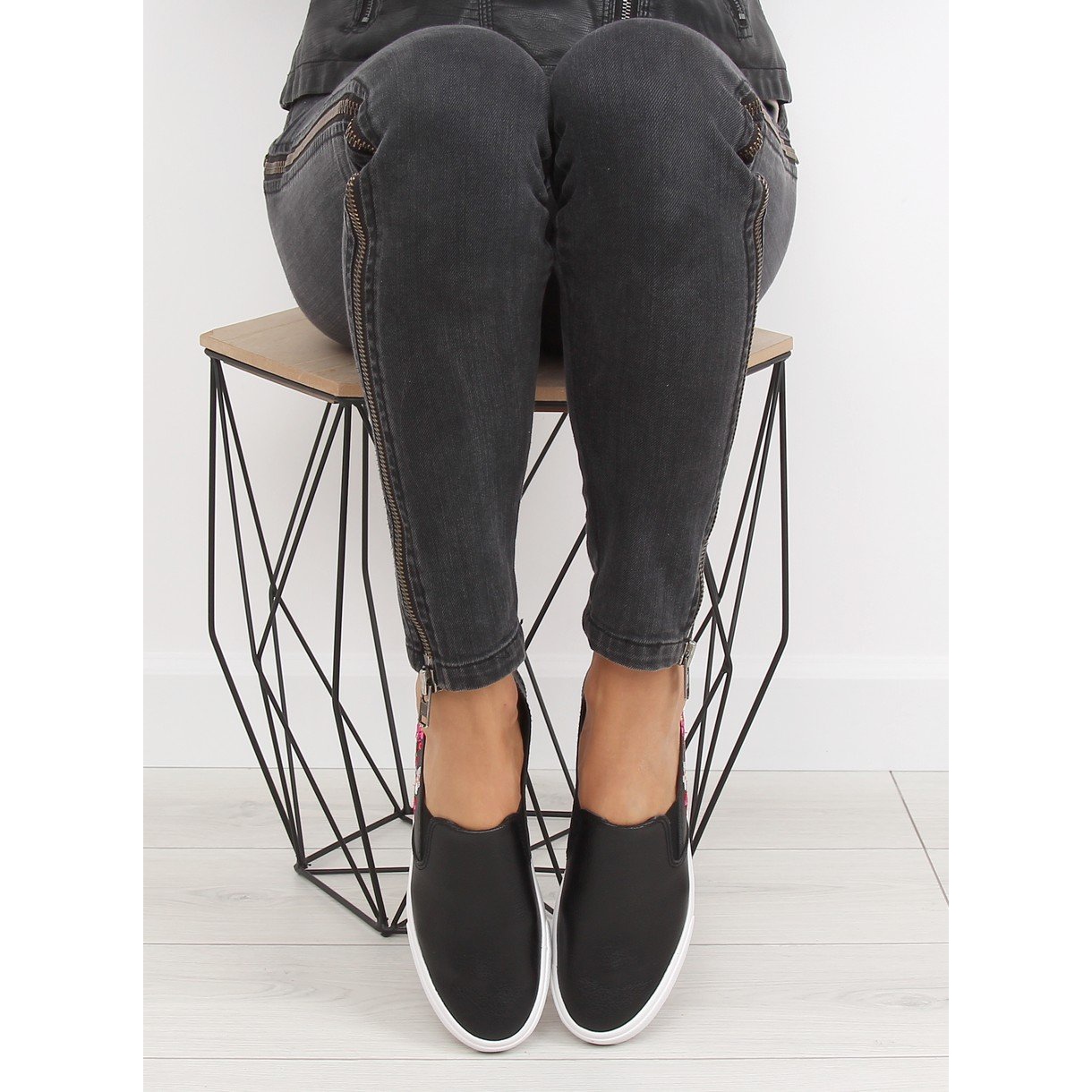 Inna marka Slipons mit zarter schwarzer Stickerei g1204a Schwarz