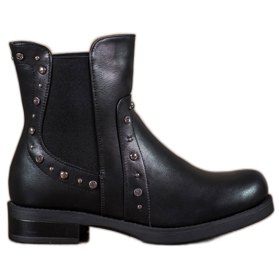 Entdecken Sie einen einzigartigen Stil mit Bestelle Slip-On-Stiefeletten mit Strasssteinen in elegantem Schwarz. Dieses aus ökologischem Leder gefertigte Modell vereint Komfort und modisches Design, reicht bis über den Knöchel und sorgt für Komfort bei alltäglichen Aktivitäten. Dank Gummieinsätzen auf beiden Seiten des Obermaterials ist das Anziehen einfacher als je zuvor.