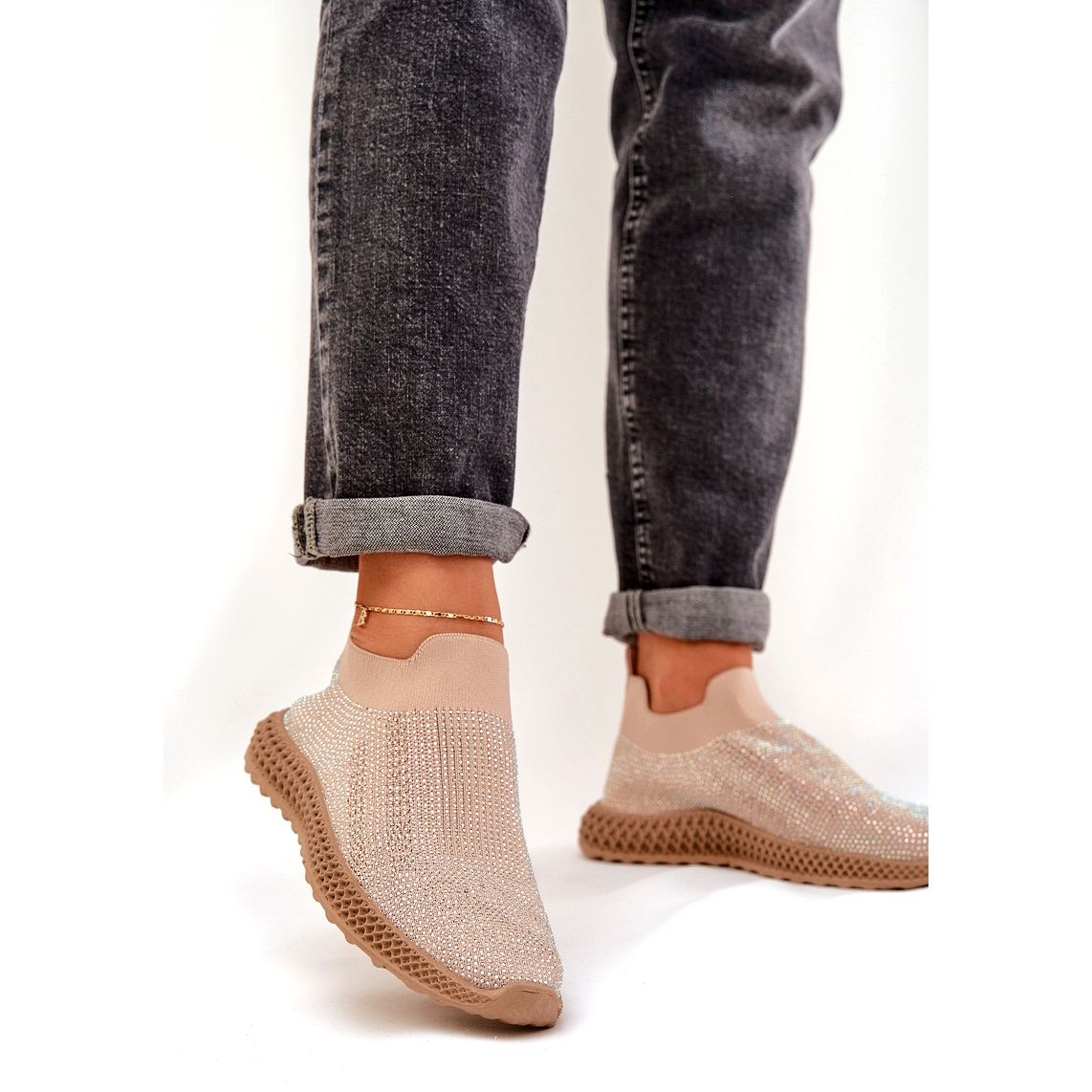 Wir präsentieren die Slip -up -Frauen -Sportschuhe S. Barski TW121 in einer eleganten beige Farbe, die modernes Design und außergewöhnlichen Komfort kombiniert. Diese einzigartigen Schuhe erfreuen sich mit ihrem Obermaterial mit zarten Zirkonen, die ihnen einen subtilen Glanz verleihen und sie perfekt in die neuesten Modetrends passen.