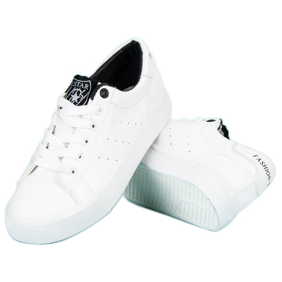 Die J. Star-Sneaker zeichnen sich durch ein modernes Design aus, das Ihr Alltags-Styling attraktiv ergänzt. Dank ihrer klassischen weißen Farbe sind sie ein universelles Kleidungsstück, das sich sowohl mit Hosen als auch mit einem Sommerkleid problemlos kombinieren lässt. Die runde Spitze und das niedrige Profil des Schuhs machen ihn leicht, und die bequeme Innensohle aus Stoff sorgt dafür, dass er den ganzen Tag über angenehm zu tragen ist.
