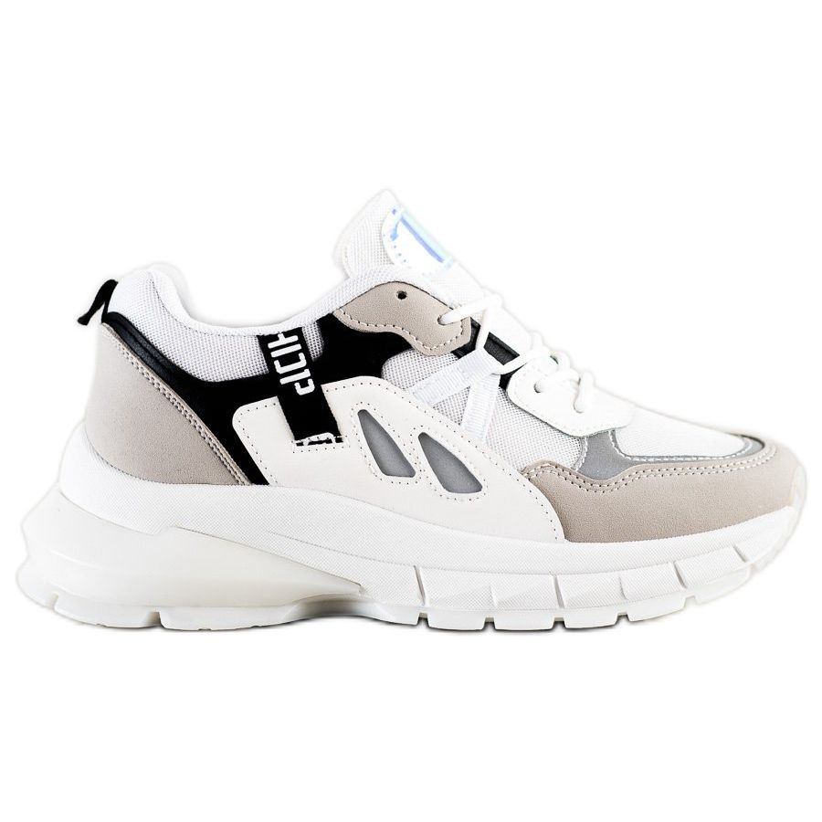 SHELOVET-Plateau-Sneaker sind die perfekte Wahl für Frauen, die Komfort mit einem originellen Look kombinieren möchten. Sie bestehen aus hochwertigem Material im Lederimitat und atmungsaktivem Mesh und sorgen für Tragekomfort auch an einem langen Tag. Mehrfarbige Einsätze in Weiß-, Grau- und Schwarztönen auf dem Obermaterial verleihen ihnen einen modernen Charakter, und der blaue Akzent mit Holo-Effekt macht die Schuhe zu einem Blickfang und sticht in der Menge hervor.