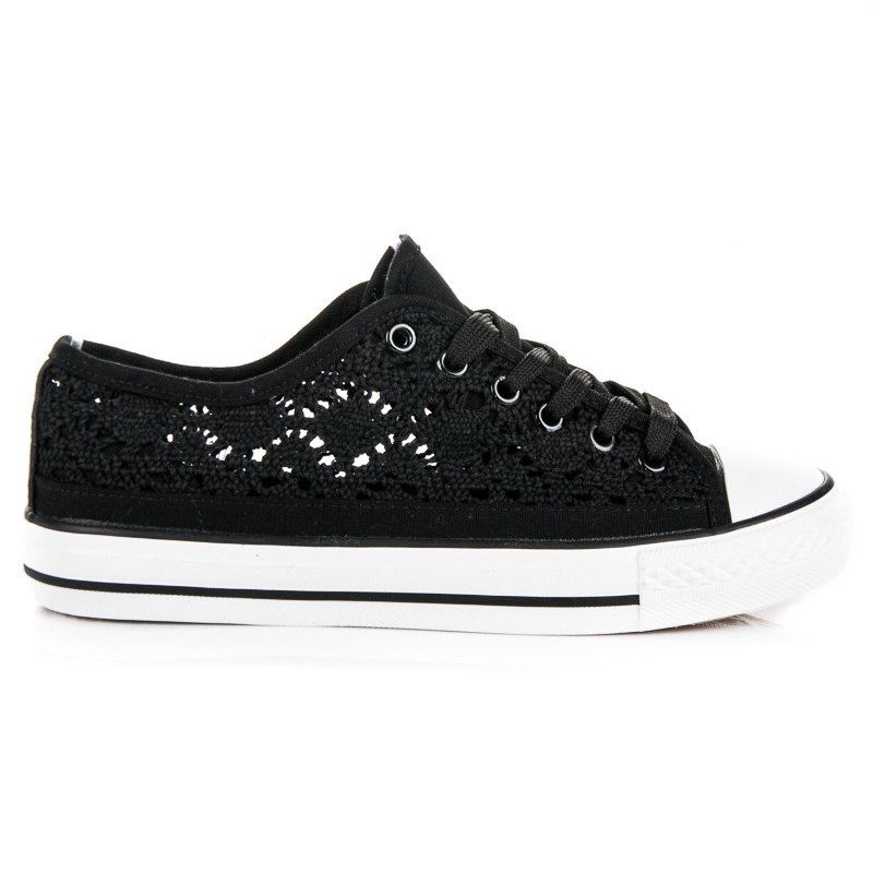 Wir präsentieren schwarze Spitzensneaker der Marke Inna – die perfekte Wahl für Frauen, die Wert auf Stil und Komfort legen. Diese niedrigen Sneakers mit praktischem Schnürverschluss passen sich perfekt dem Fuß an und sorgen für Komfort im Alltag.
