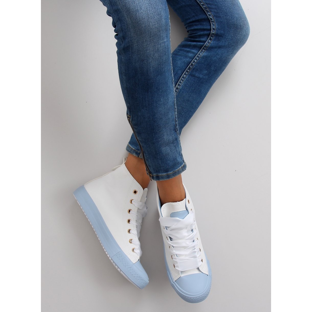 Details: Sneakers für den Knöchel mit doppelten Schnürsenkeln bl102p Blau weiß