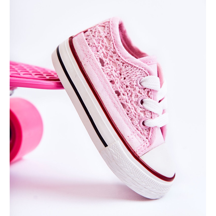 Inna marka Sneakers für Kinder mit Spitze Weiß Roly-Poly rosa