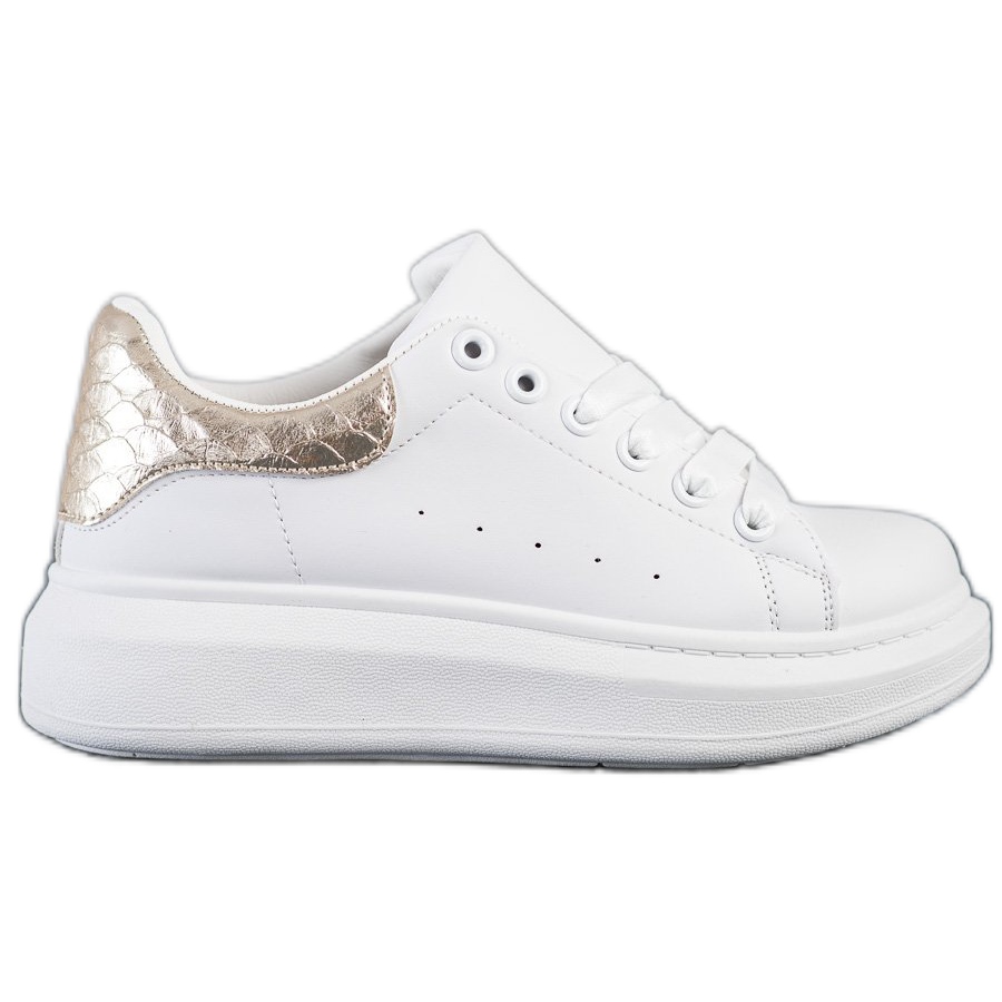 Details: Weide Sneakers mit goldenem Einsatz weiß
