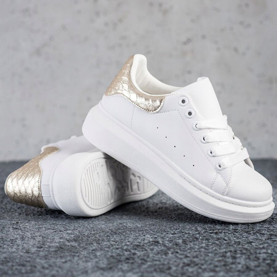 Hier ist das perfekte Angebot für alle Frauen, die Wert auf Komfort in Kombination mit modischem Stil legen – Weide-Sneaker mit goldenem Einsatz in klassischem Weiß. Diese Sportschuhe sind eine großartige Wahl für den täglichen Gebrauch, perfekt für Herbst-, Winter- und Frühlingstage.