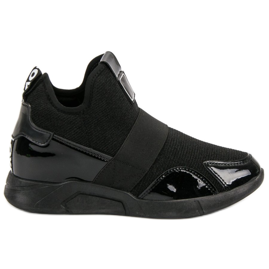 Entdecken Sie Komfort und Stil in einem neuen Paar Slip-On-Wedge-Sneakers, die perfekt zu aktuellen Modetrends passen. Diese originellen Sportschuhe in klassischem Schwarz sind die perfekte Wahl für jede Frau, die Wert auf Alltagskomfort und einen modischen Look legt.