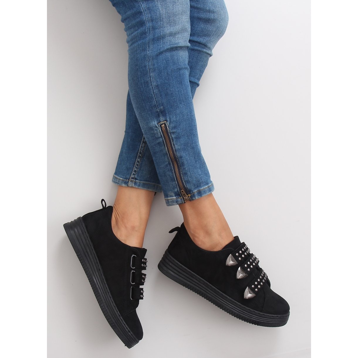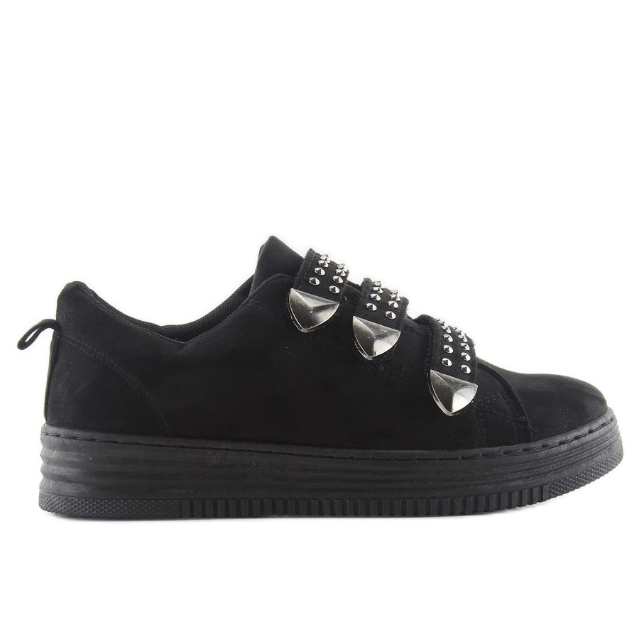 16-582 Schwarze Sneakers mit Nieten sind die perfekte Wahl für Frauen, die jeden Tag Wert auf Mode und Komfort legen. Diese schwarzen Sneaker aus umweltfreundlichem Wildleder zeichnen sich nicht nur durch ihr stilvolles Design, sondern auch durch ihre Zweckmäßigkeit aus. Mit Klettbändern befestigt, ermöglichen sie ein schnelles und bequemes An- und Ausziehen.