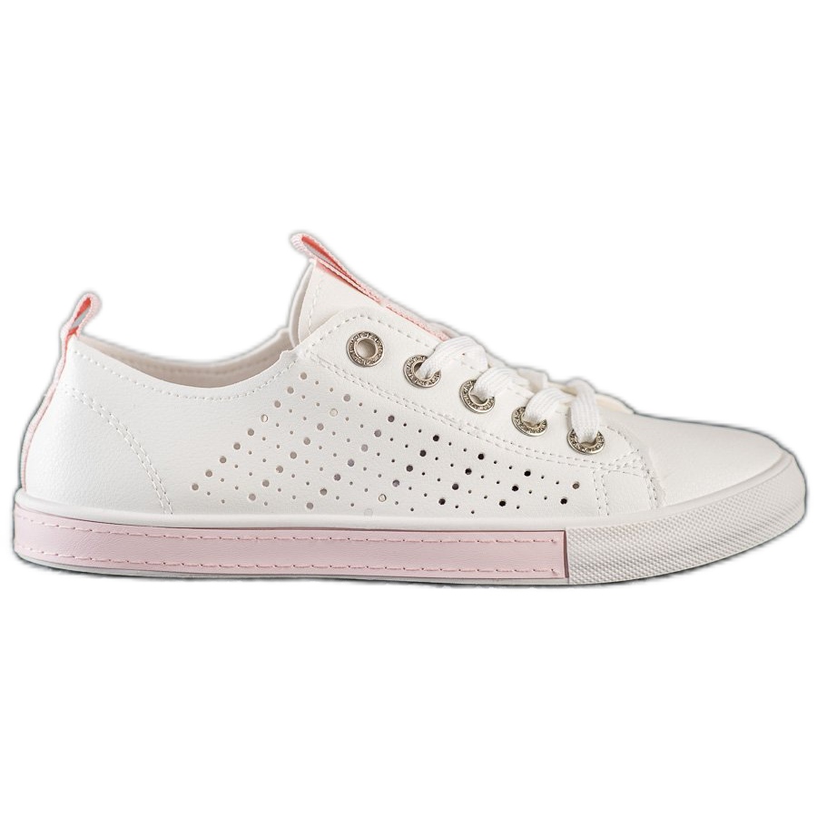 Diese Sneaker zeichnen sich durch eine zeitlose weiße Farbe aus, die perfekt zu verschiedenen Kombinationen passt. Das durchbrochene Muster verleiht Originalität und Leichtigkeit und passt perfekt zu Frühlings- und Sommertrends. Die Sohle mit Profil aus Kunststoff sorgt für Stabilität und Komfort bei alltäglichen Spaziergängen.