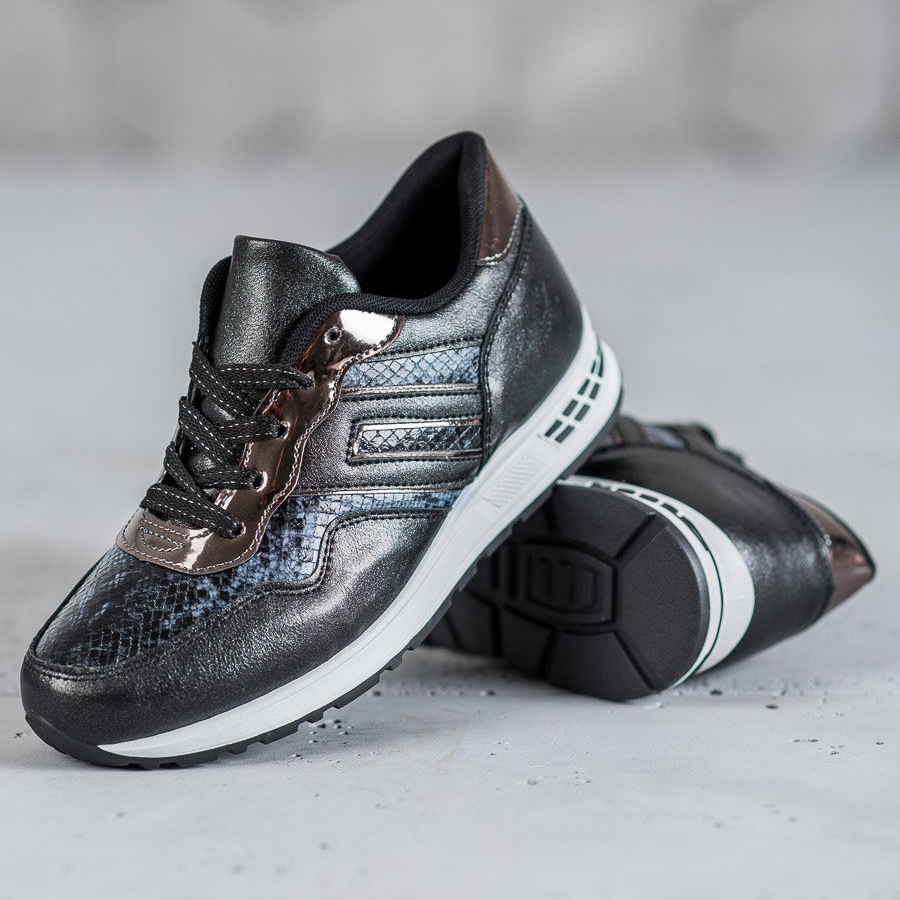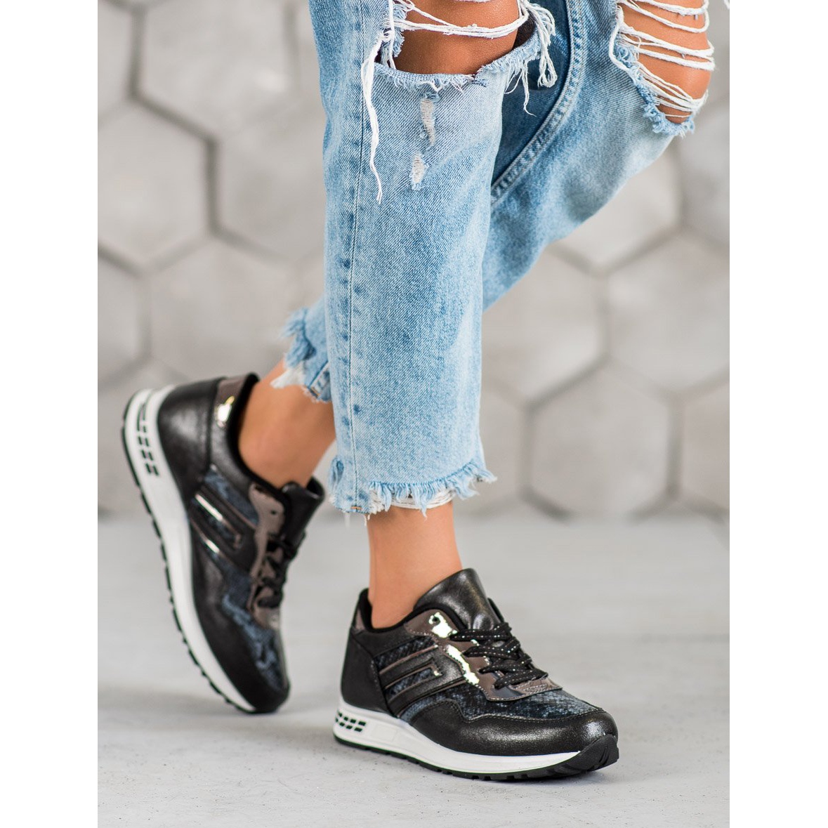 Die schwarzen Sneakers mit Schlangenmuster der Marke SHELOVET sind die perfekte Wahl für Frauen, die Mode mit Komfort kombinieren möchten. Diese niedrigen Sportschuhe zeichnen sich durch ihre elegante schwarze Farbe und das Tiermuster aus, die ihnen einen einzigartigen Charakter verleihen. Goldelemente sind ein zusätzlicher Akzent, der ins Auge fällt und jedem Styling einen stilvollen Abschluss verleiht.