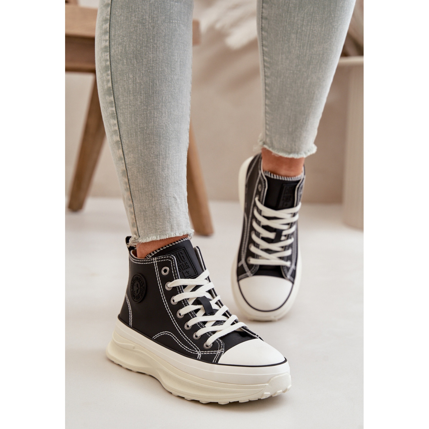 Sneakers Model Big Star OO274063 Black - Style -Style ist ein ideales Angebot für Frauen, die eine Kombination aus Komfort mit einem modischen Look schätzen. Diese schwarzen Turnschuhe, die aus hochwertigem Pu -Material bestehen, ahmen perfekt natürliche Haut, was ihnen einen einzigartigen Charakter verleiht. Die klassische Form der Schnürung und eine abgerundete Nase machen dieses Schuhen zeitlos und passt zu vielen Stilen.