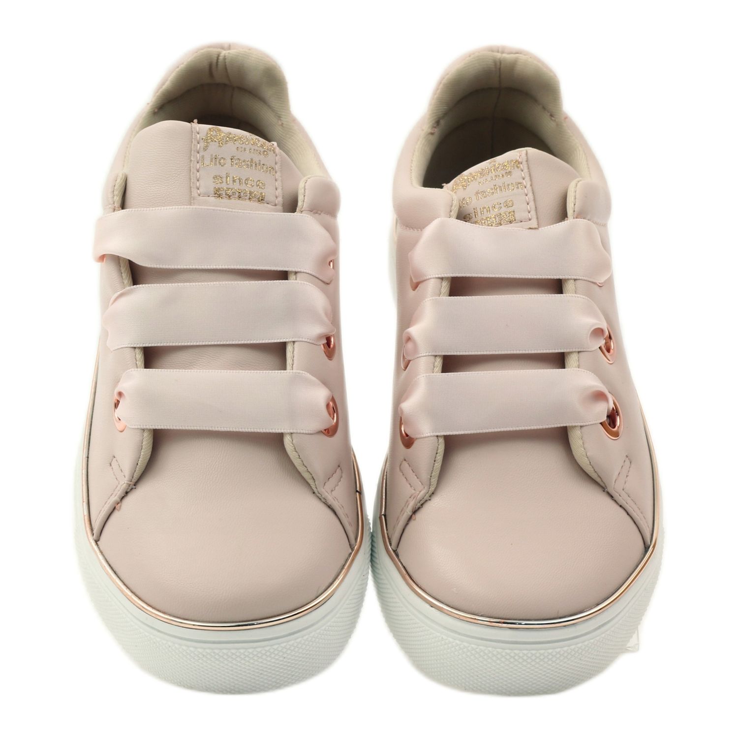 Die stilvollen Sneakers American Club 17508 in zartem Rosa sind perfekt für Mädchen, die Wert auf modisches Aussehen und Komfort legen. Das Obermaterial aus hochwertigem ökologischem Leder sieht schön aus und ist leicht zu reinigen. Anstelle traditioneller Schnürsenkel wird ein dekoratives, durch breite Ösen gefädeltes Satinband verwendet, das den Schuhen einen mädchenhaften Charakter verleiht.
