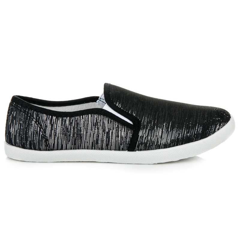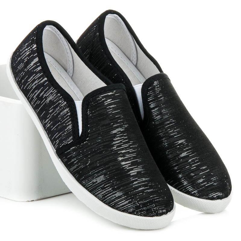 Wir präsentieren Slip-On-Sneaker mit Silberfaden in klassischem Schwarz, perfekt für jede Frau, die Wert auf Komfort und Stil legt. Diese Halbschuhe sind aus hochwertigem Stoff gefertigt, der nicht nur Tragekomfort, sondern auch Haltbarkeit und Widerstandsfähigkeit im täglichen Gebrauch gewährleistet.