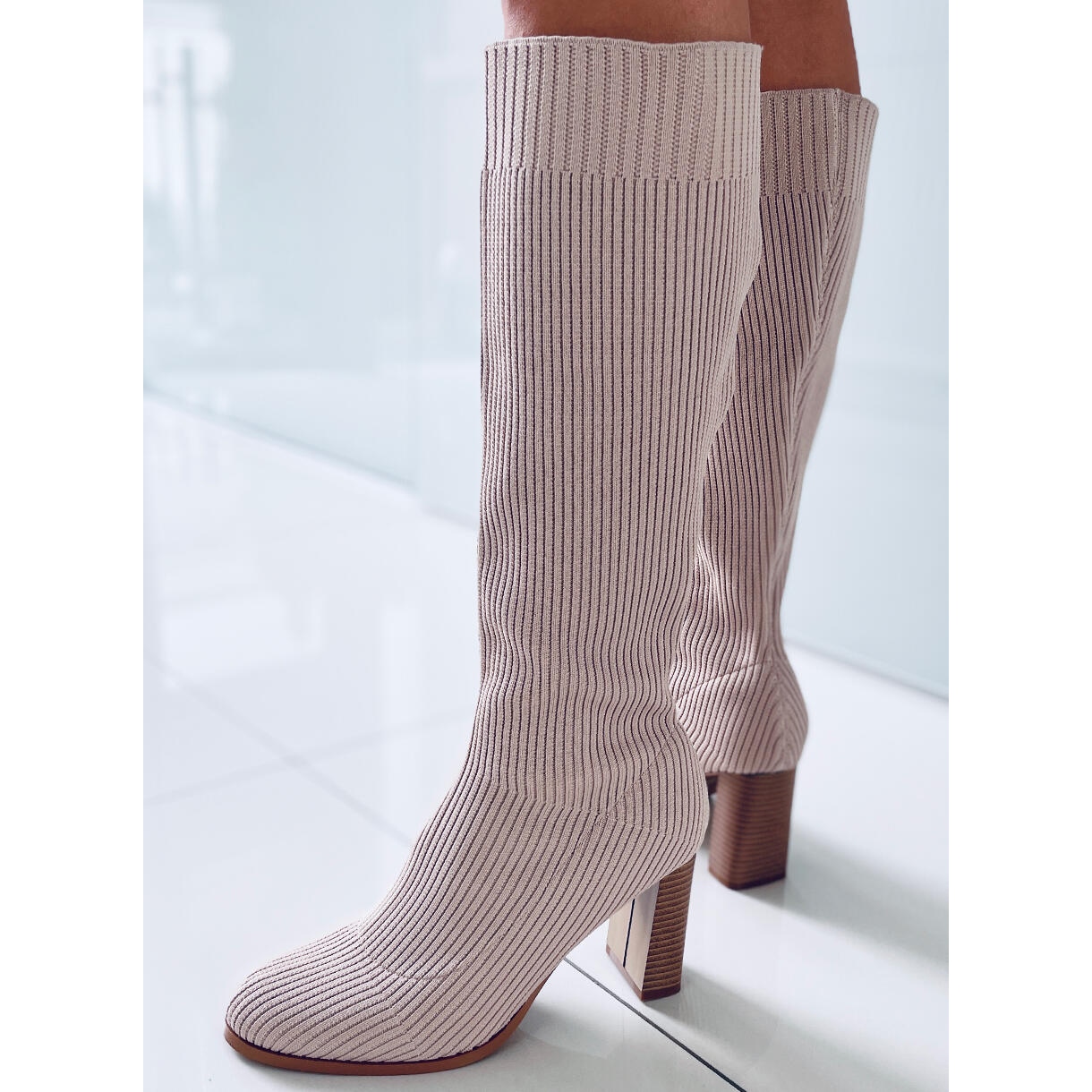 Details: Sock Boots mit hohem Absatz von Claudia Taupe beige