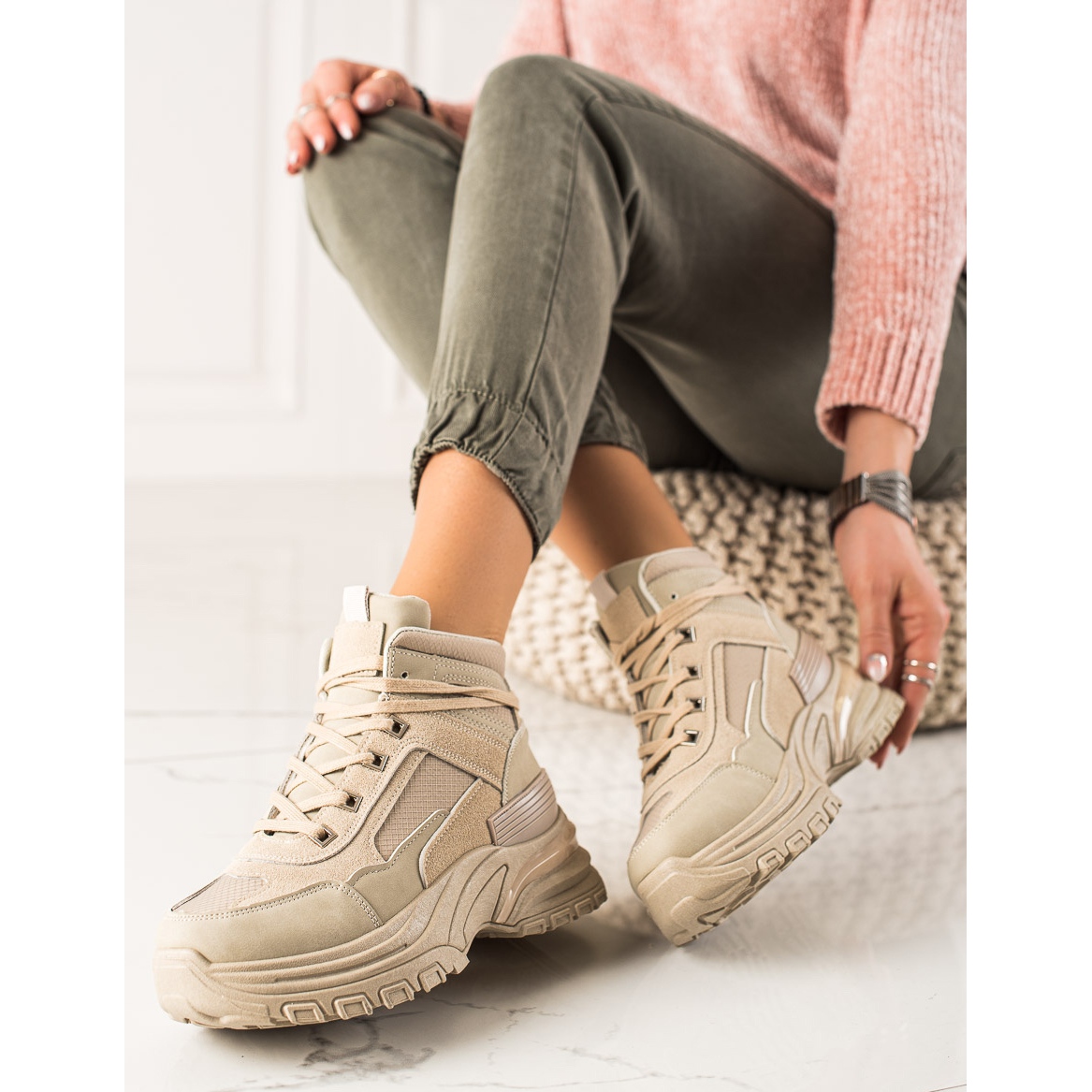Entdecken Sie Komfort und Stil mit den High-Top-Sportsneakern von Sweet Shoes in Beige. Perfekt für moderne Frauen, die sowohl Wert auf modisches Aussehen als auch auf Alltagskomfort legen. Diese Schuhe, die zu 50 % aus Lederimitat und zu 50 % aus Wildlederimitat bestehen, vereinen Eleganz und Zweckmäßigkeit perfekt.