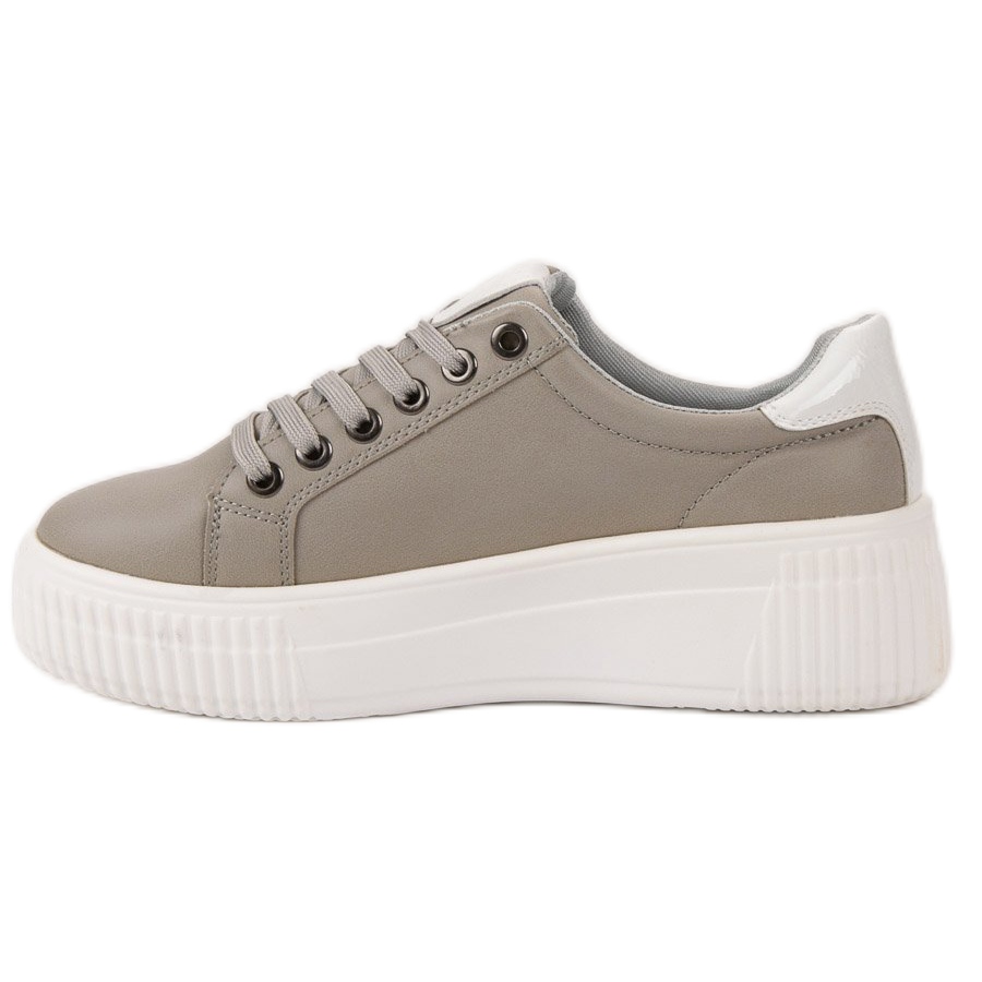 Entdecken Sie eine neue Dimension von Komfort und Stil mit Sport-Plateauschuhen der Marke Kylie. Das Modell in einem eleganten Grauton passt perfekt zu verschiedenen Stilrichtungen und setzt einen modischen Akzent. Die kontrastierende weiße Sohle erhöht nicht nur den Komfort, sondern verleiht den Schuhen auch einen modernen Charakter.