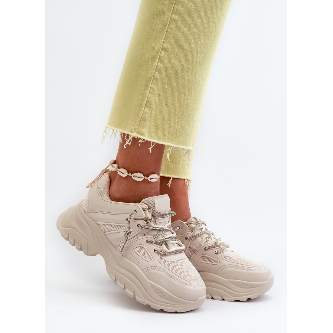 Entdecken Sie einen einzigartigen Stil und einen außergewöhnlichen Komfort mit unseren Sportschuhen auf einer riesigen Plattform in beige Farbe! Diese Turnschuhe sind die perfekte Kombination aus modischem Design und Komfort, die sicherlich die Aufmerksamkeit auf sich ziehen werden. Dank der dekorativen Schnürung erhalten die Schuhe einen originellen Charakter, und der weiche Schaumstoffeinsatz sorgt den ganzen Tag von Komfort.