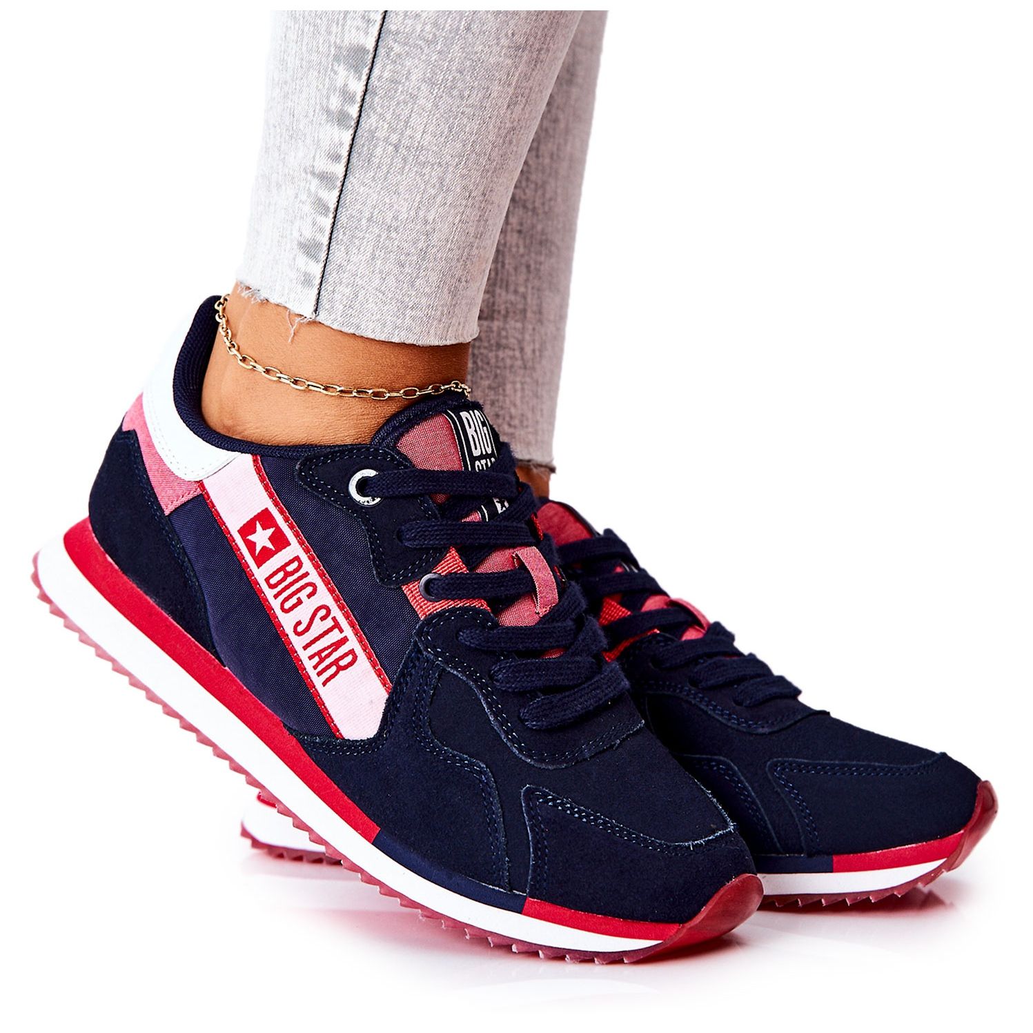 Details: Sportschuhe aus Leder Big Star II274270 Marineblau weiß rot navy blau