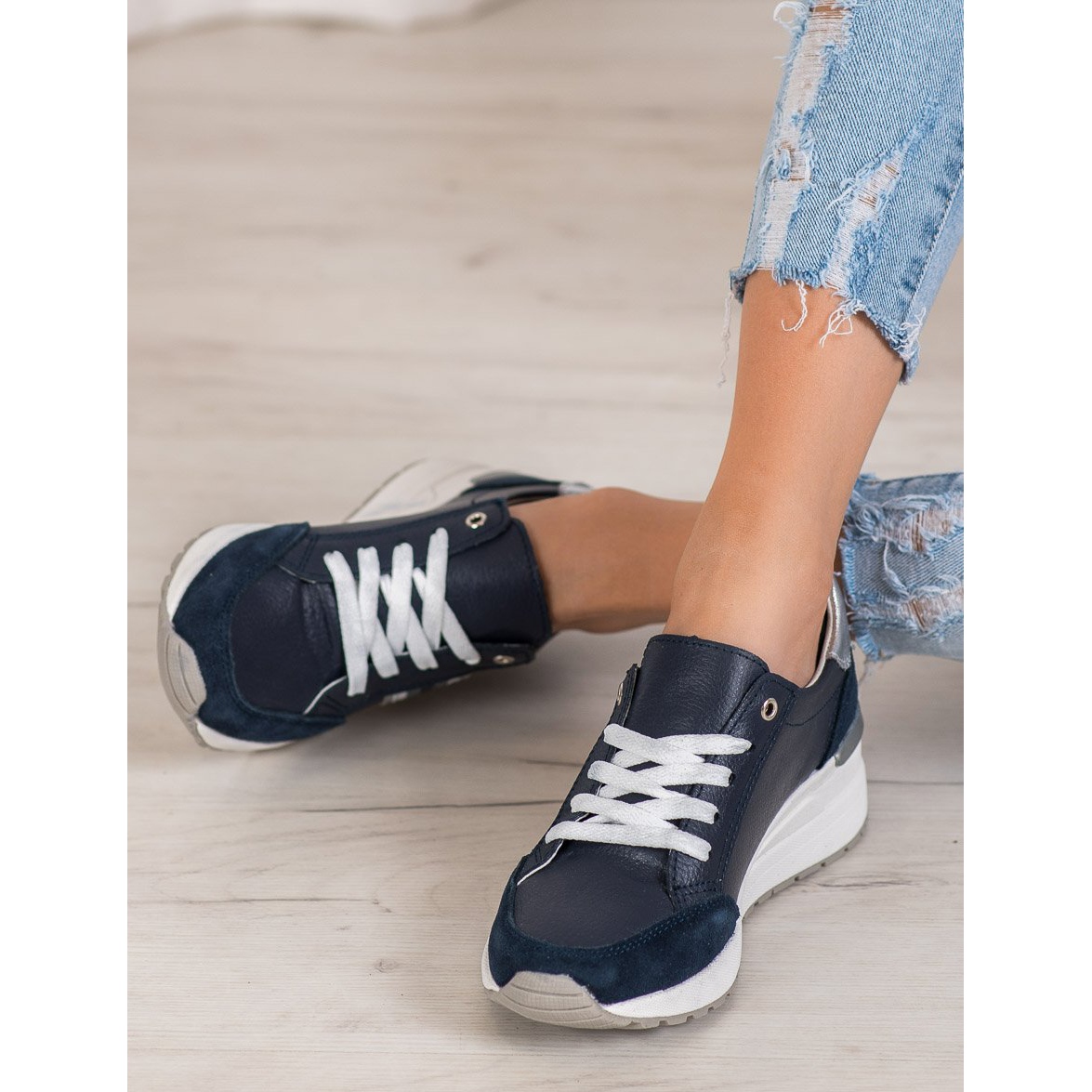 Dank der Erhöhung der Sohle wirken Ihre Beine sowohl in Kombination mit einer Hose als auch in Kombination mit einem Rock schlanker. Durch die universelle Marineblau-Farbe und die dezenten mehrfarbigen Akzente lassen sich diese Schuhe leicht mit einer Vielzahl von Stilen kombinieren, von lässig bis elegant.