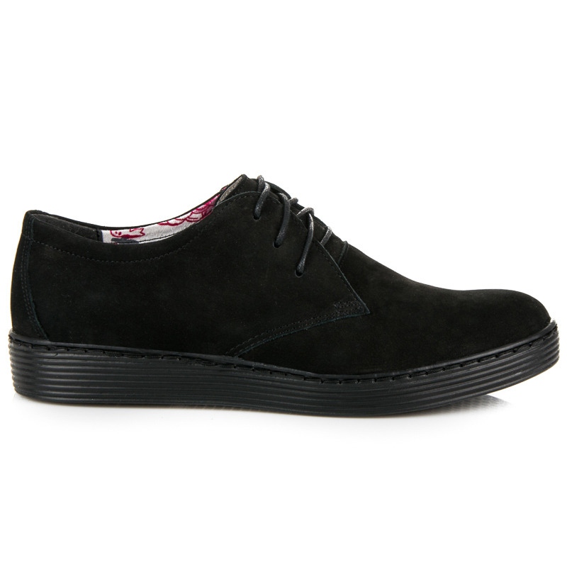 Die Schuhe zeichnen sich durch eine runde Spitze und einen aufgebauten, versteiften Absatz aus, der nicht nur für einen modischen Look, sondern auch für Tragekomfort sorgt. Dank der dicken, 3 cm hohen Sohle bieten diese Schuhe eine hervorragende Dämpfung und Stabilität, was sie zu einer hervorragenden Wahl für den täglichen Gebrauch macht.