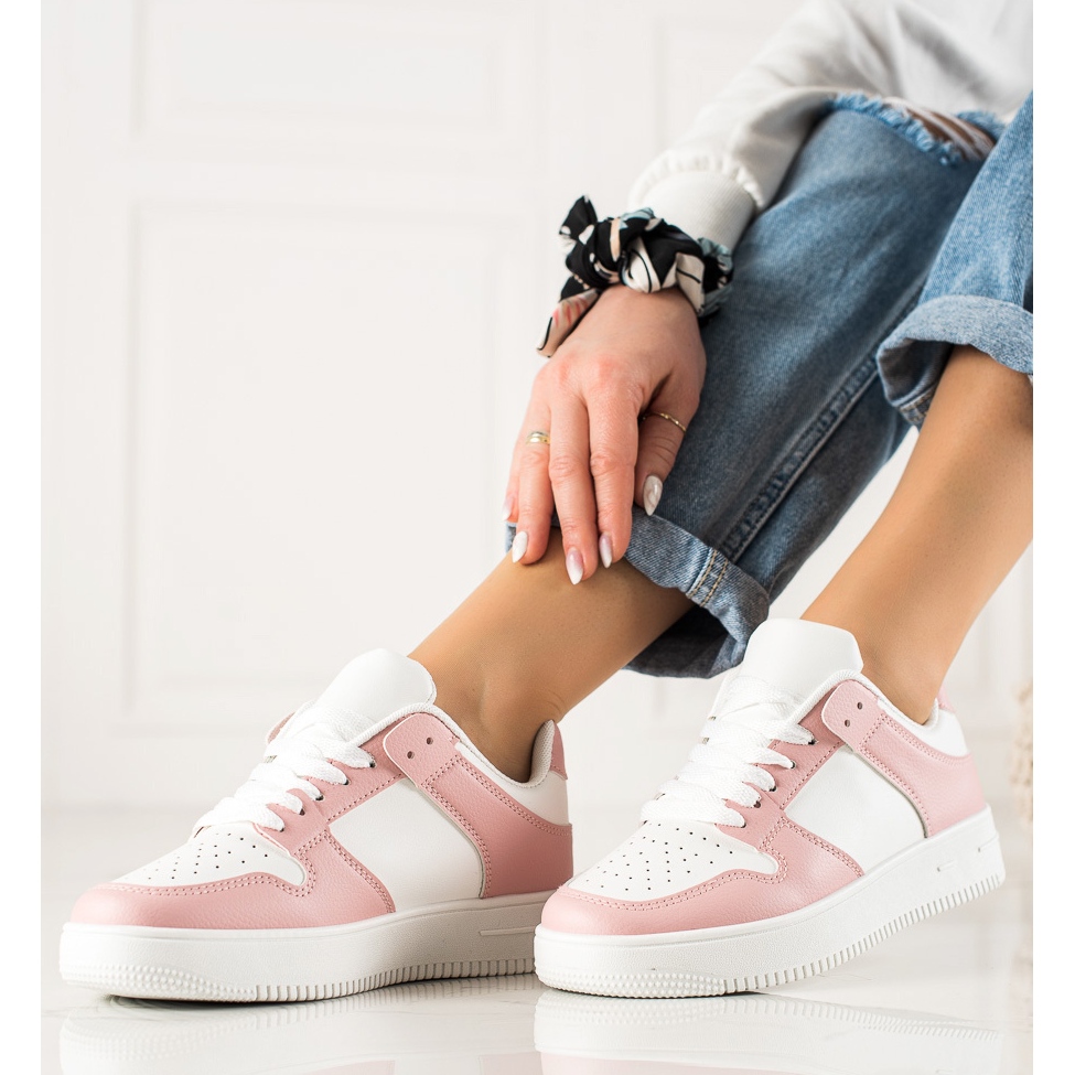 Stylish, komfortabel und universell - Sportsschuhe für Sport -Frauen mit Eco -Leather sind täglich ein idealer Vorschlag. Die Kombination von Weiß mit einem zarten rosa Akzent bedeutet, dass das Modell sowohl bei Freizeitstilisationen als auch zu Sportstilisationen gut passt.