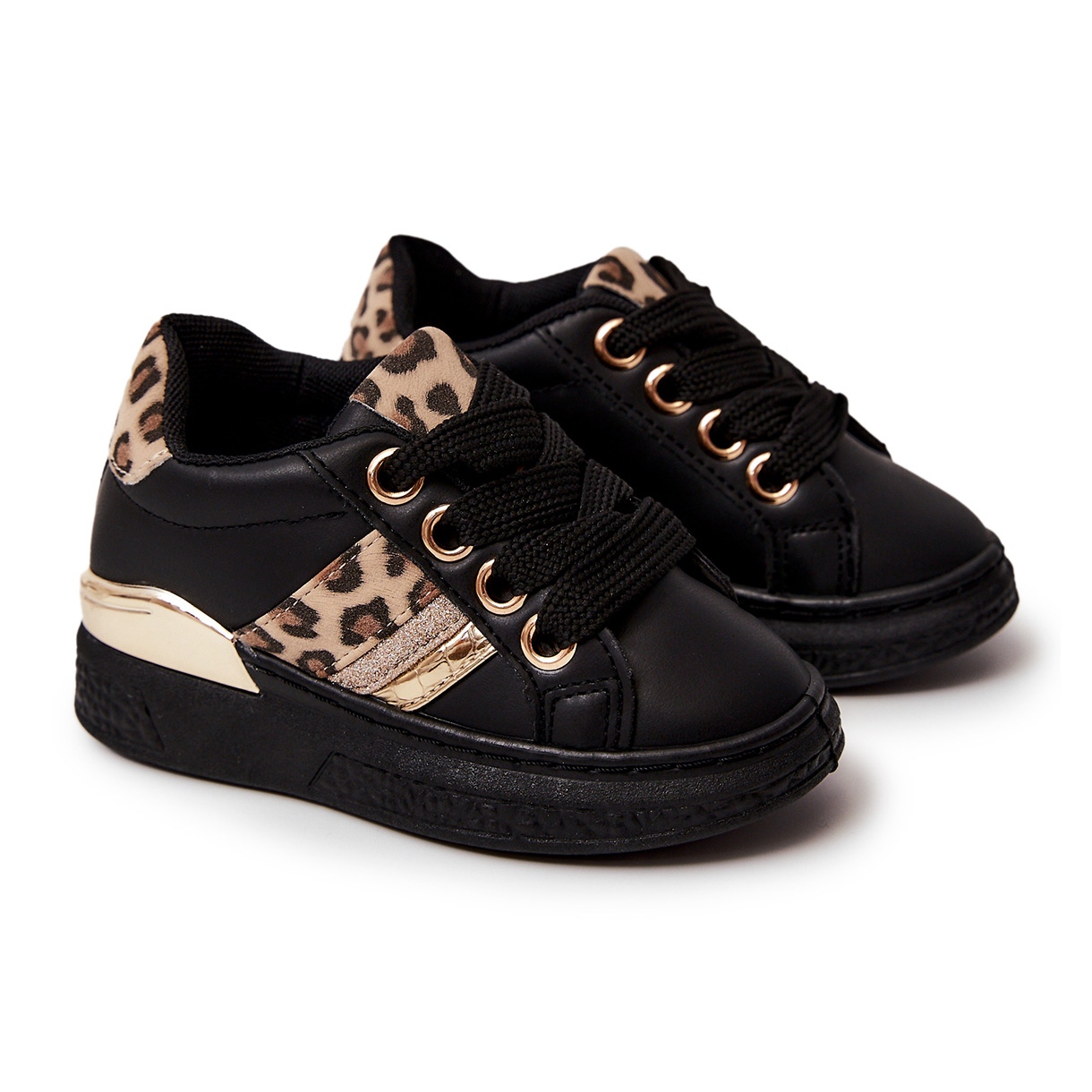 Details: FR1 Sportschuhe aus schwarzem Trixie-Leder mit Leopardenmuster