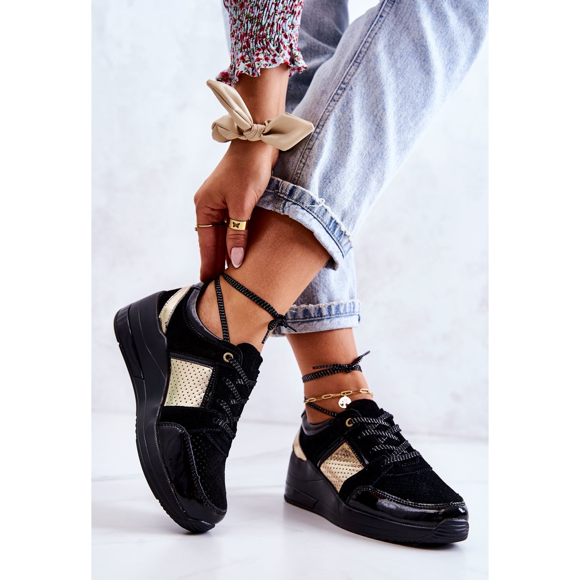 S.Barski S.Barski Sportschuhe aus Wildleder für Damen auf einem Keil Schwarz Larson