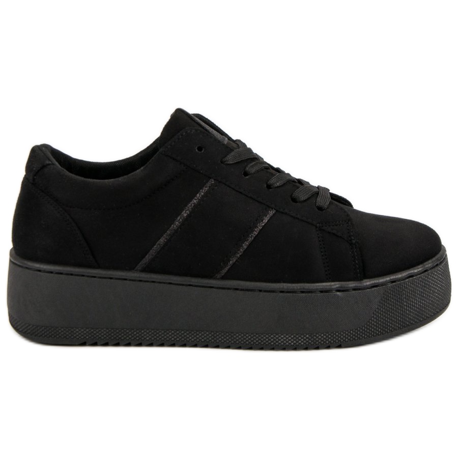 Wir präsentieren schwarze Wildleder-Sportschuhe, die zu einem Must-have in der Garderobe jeder Frau geworden sind. Diese stylischen Sneaker aus hochwertigem Wildlederimitat vereinen Eleganz mit Funktionalität. Ihr beeindruckend hohes Plateau von 4,5 cm verleiht nicht nur Charakter, sondern sorgt auch für Tragekomfort.