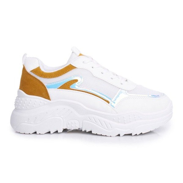 Wir präsentieren die einzigartigen gelb-weißen Damen-Sportschuhe BUGO 878, die modernes Design mit Komfort und Funktionalität verbinden. Diese Sneaker zeichnen sich durch eine originelle Kombination aus weißen, gelben Farben und dezenten Goldakzenten aus, wodurch sie perfekt in jedes Styling passen, sowohl beim Training als auch im Alltag.