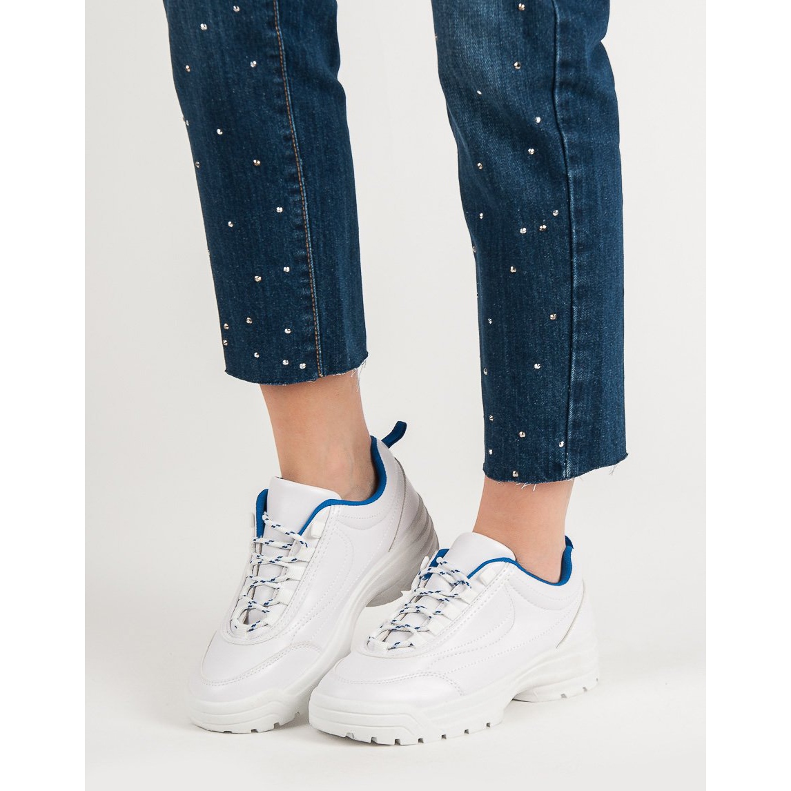 Diese Schuhe, weiß mit marineblauen Elementen, ergeben eine einzigartige Komposition, die mit Sicherheit die Aufmerksamkeit auf sich ziehen wird. Sie eignen sich perfekt für Frühling, Sommer sowie Herbst und Winter und sind eine tolle Wahl für jeden Tag. Hochwertige Materialien, wie eine Synthetiksohle und Einlegesohlenstoff, sorgen für Langlebigkeit und Tragekomfort.