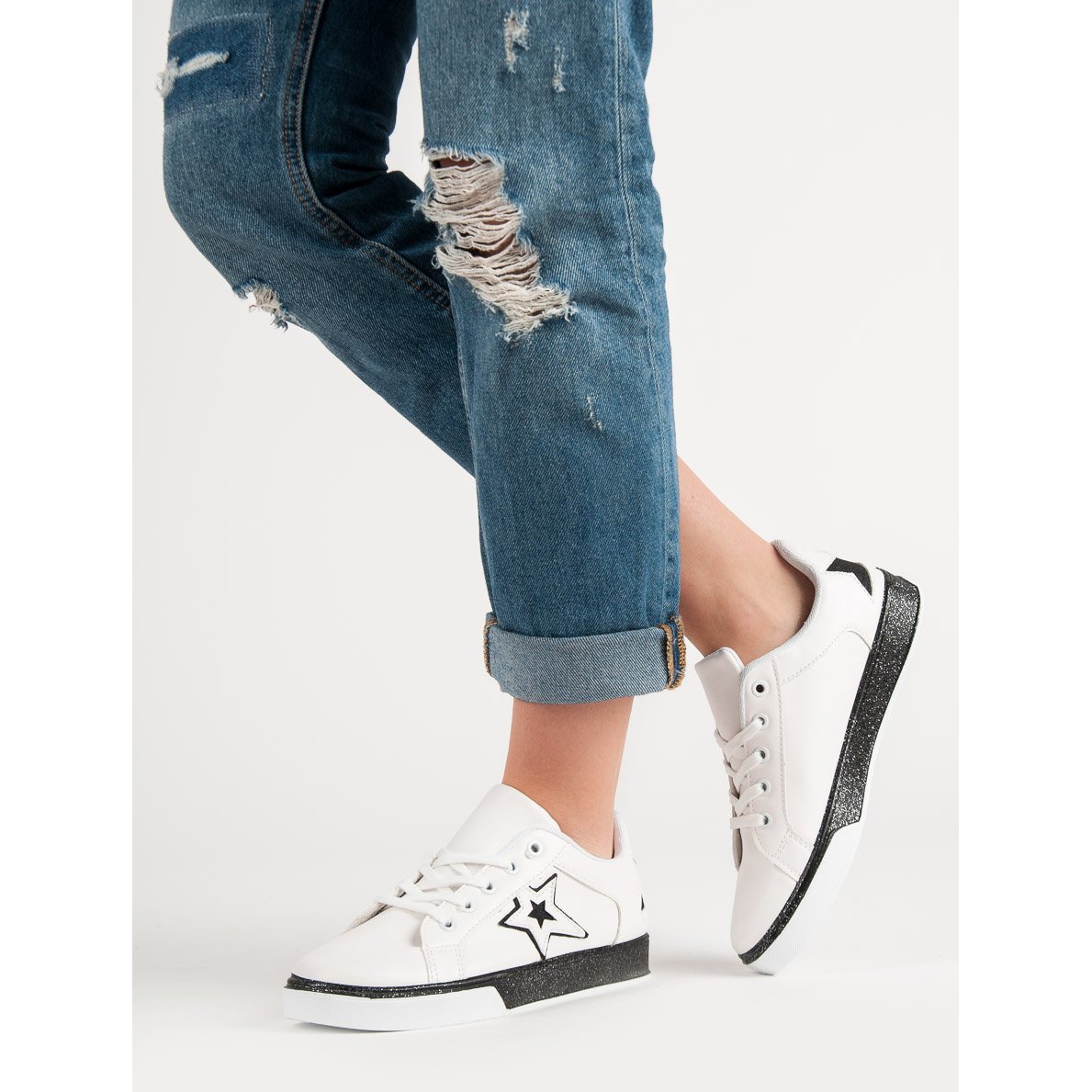 Ohne Muster, mit minimalistischem Design sind diese weiß-schwarzen Sportschuhe aus der KeeShoes-Kollektion ein Must-Have in der Garderobe jeder Fashionista, die ihren individuellen Stil unterstreichen möchte. Entscheiden Sie sich jeden Tag für Komfort und Eleganz mit unseren Damen-Sneakern!
