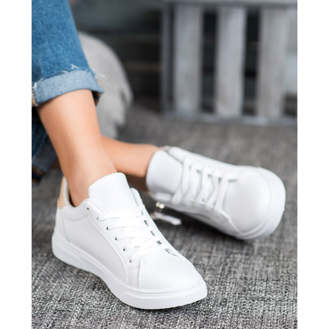 SHELOVET Sportschuhe mit dekorativem Reißverschluss in Weiß sind die perfekte Wahl für Frauen, die Wert auf die Kombination aus Komfort und modischem Design legen. Diese attraktiven Sportschuhe zeichnen sich durch einen eindrucksvollen Zierreißverschluss und einen dezenten Lachs-Akzent aus und liegen damit perfekt im Trend.