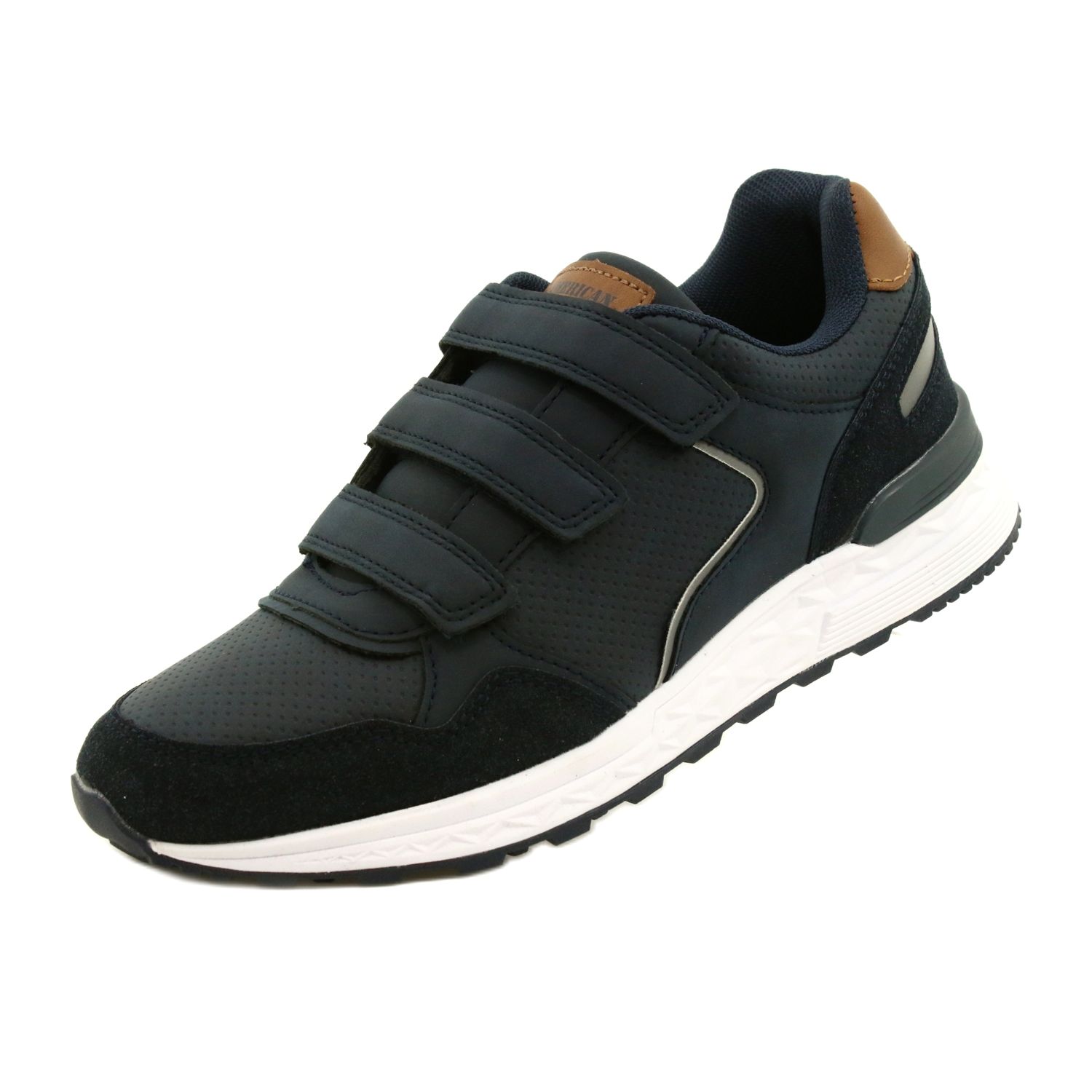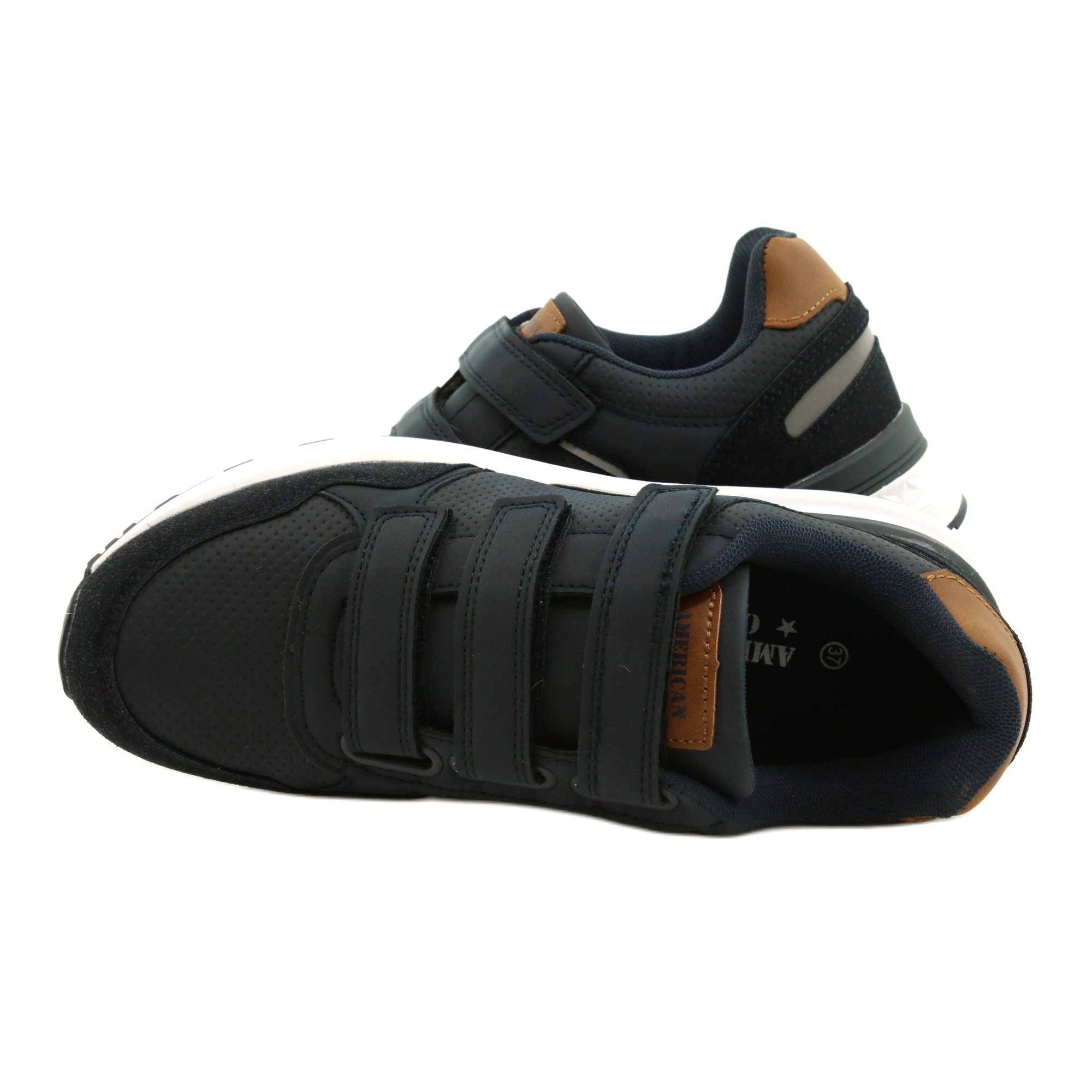 Moderne und komfortable Sportschuhe American Club AA15/22 in einer klassischen dunkelblauen Farbe. Hergestellt aus ökologischem Leder mit Wildlederverstärkungen, die für den täglichen Gebrauch entwickelt wurden - werden sie an Spaziergängen, in der Stadt und während der Freizeitaktivitäten arbeiten.