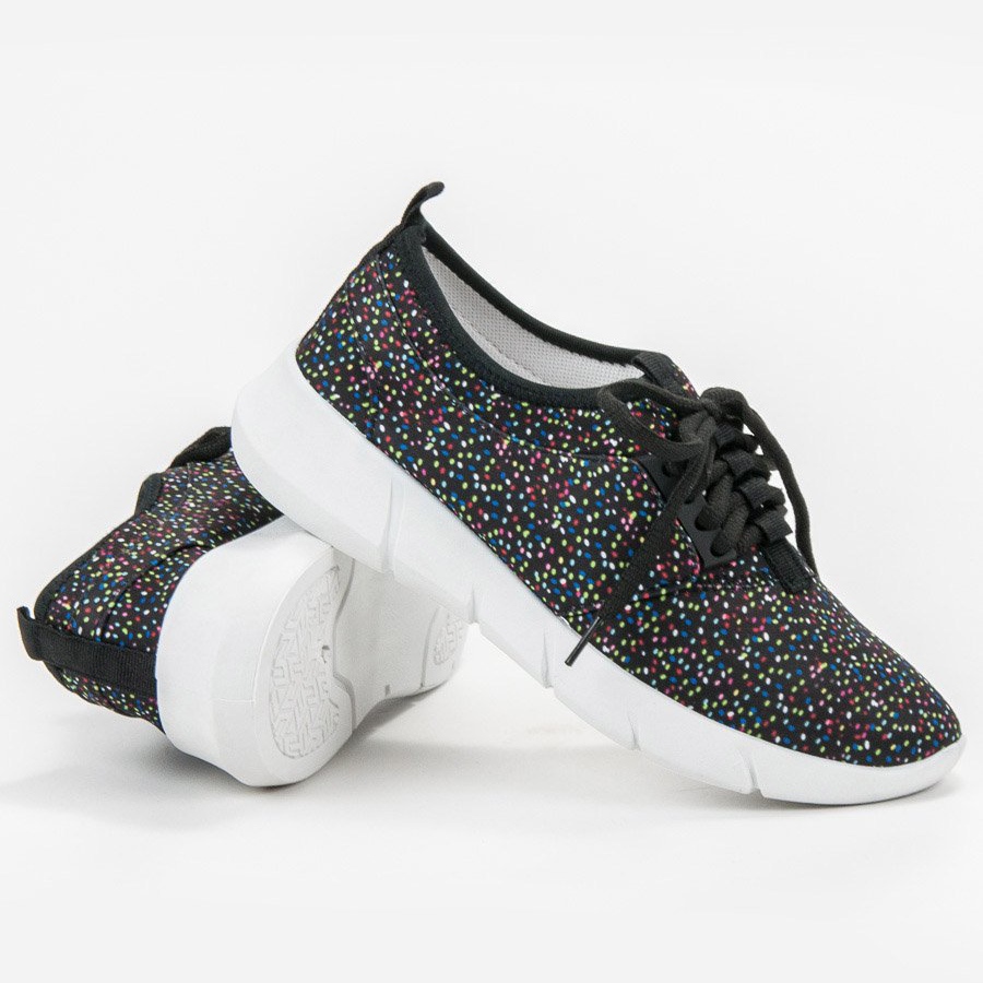 Wir präsentieren die gepunkteten Sportschuhe von Bona, die Ihre Garderobe mit Sicherheit bereichern werden! Dieses bezaubernde schwarze Modell, verziert mit bunten Punkten, ist ein perfektes Angebot für Frauen, die ihrem Styling etwas Frische verleihen möchten. Dank der weißen Sohle passen diese Schuhe sowohl zu Sport- als auch zu Freizeitoutfits perfekt.