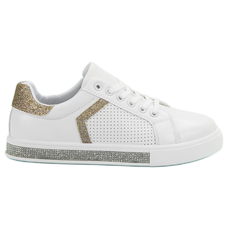 Sie sind auf der Suche nach den perfekten Alltagsschuhen, die Komfort mit modischem Look vereinen? Wir präsentieren weiße Sneaker von Ideal Shoes, die mit ihrer einzigartigen Ästhetik sicherlich die Aufmerksamkeit auf sich ziehen. Diese eleganten Sportschuhe zeichnen sich durch Goldglitter und Strasssteine aus, die dem klassischen, lässigen Stil etwas Glanz und Chic verleihen.