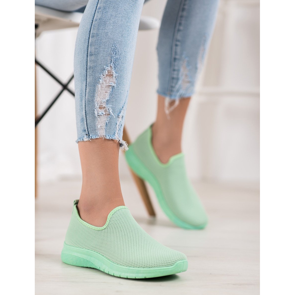 Wir präsentieren äußerst stylische und bequeme Super Mode Slip-On-Sportschuhe in einem pastellgrünen Farbton. Dieses für moderne Frauen konzipierte Modell wird sich sicherlich von anderen Vorschlägen abheben.