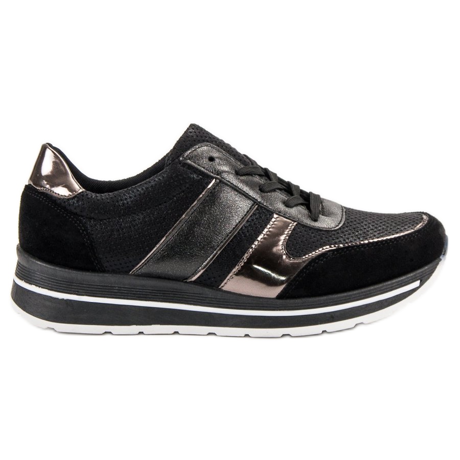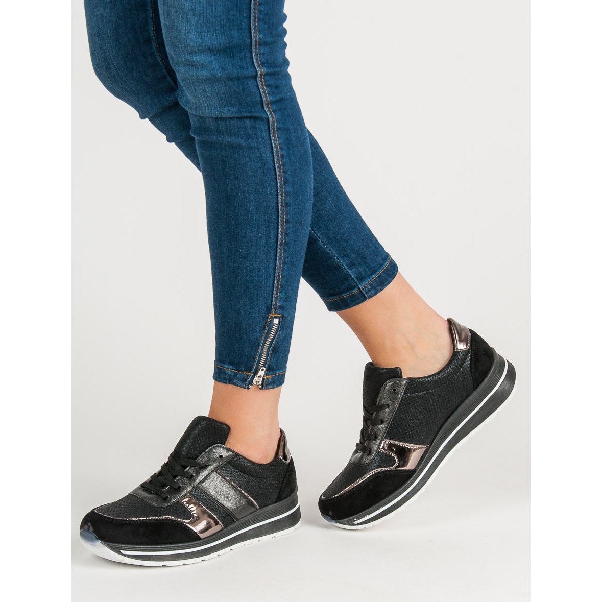 Wir präsentieren SHELOVET-Sportschuhe, die sicherlich Ihre Aufmerksamkeit erregen werden! Diese schwarzen Sneaker sind eine perfekte Ergänzung sowohl zu Sport- als auch zu Freizeitstilen. Durch dezente, glänzende Goldakzente gewinnen sie an Eleganz und Klasse und passen mit ihrem modischen Design perfekt zu aktuellen Trends.