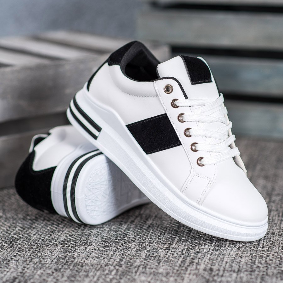 SHELOVET-Schnürsportschuhe sind ein einzigartiges Modell, das dem alltäglichen Styling Eleganz verleiht. Hergestellt aus hochwertigen Materialien, darunter Lederimitat und Wildlederimitat, vereinen diese weißen Schuhe mit schwarzen Einsätzen Komfort mit modischem Design.