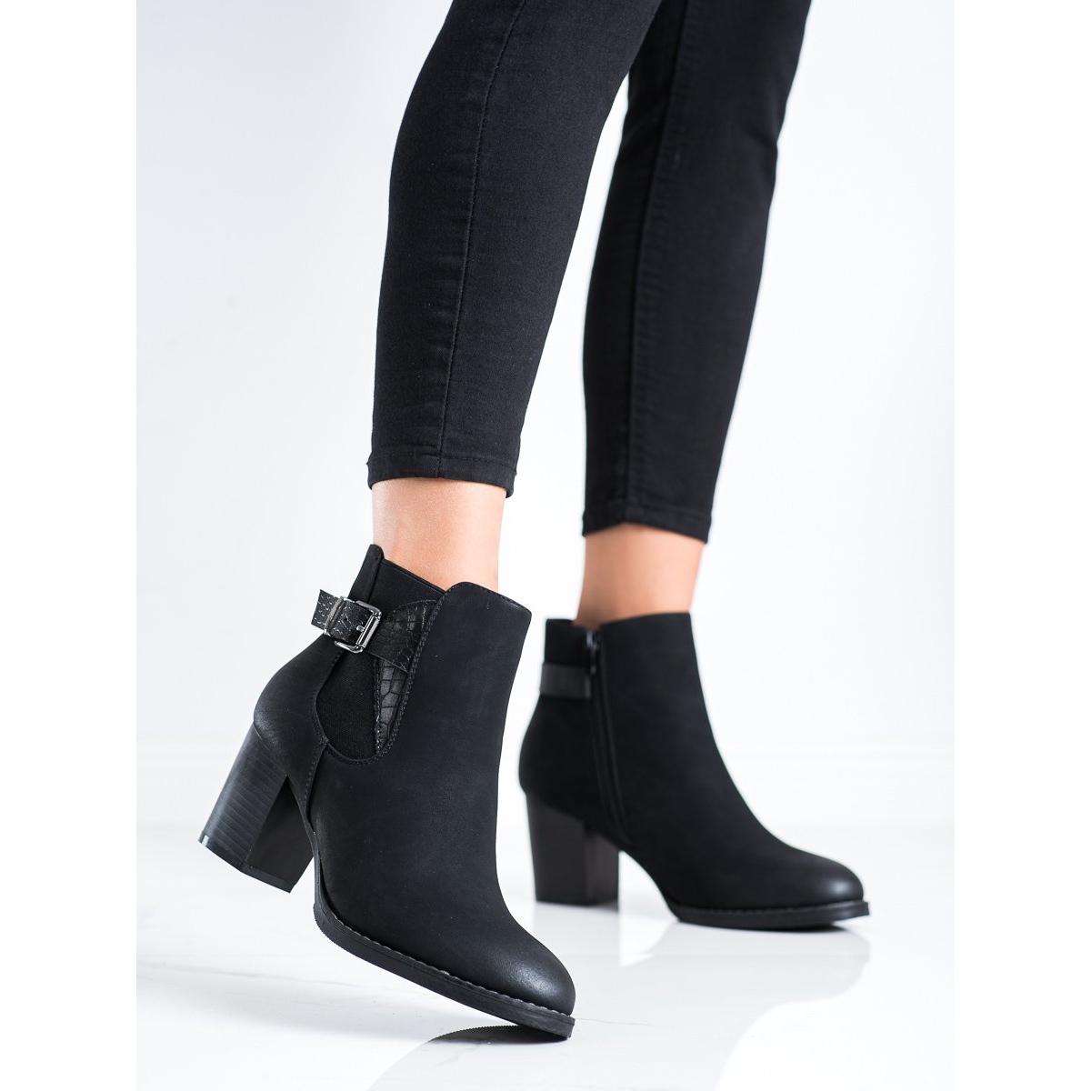 Entdecken Sie Eleganz und Komfort dank hochhackiger Stiefeletten mit Zierschnalle des Herstellers J. Star. Diese stilvollen schwarzen Stiefeletten sind die perfekte Wahl für Frauen, die lässigen und eleganten Stil kombinieren möchten. Aus hochwertigem ökologischem Leder gefertigt, begeistern sie nicht nur durch ihre Ästhetik, sondern auch durch ihren Tragekomfort.