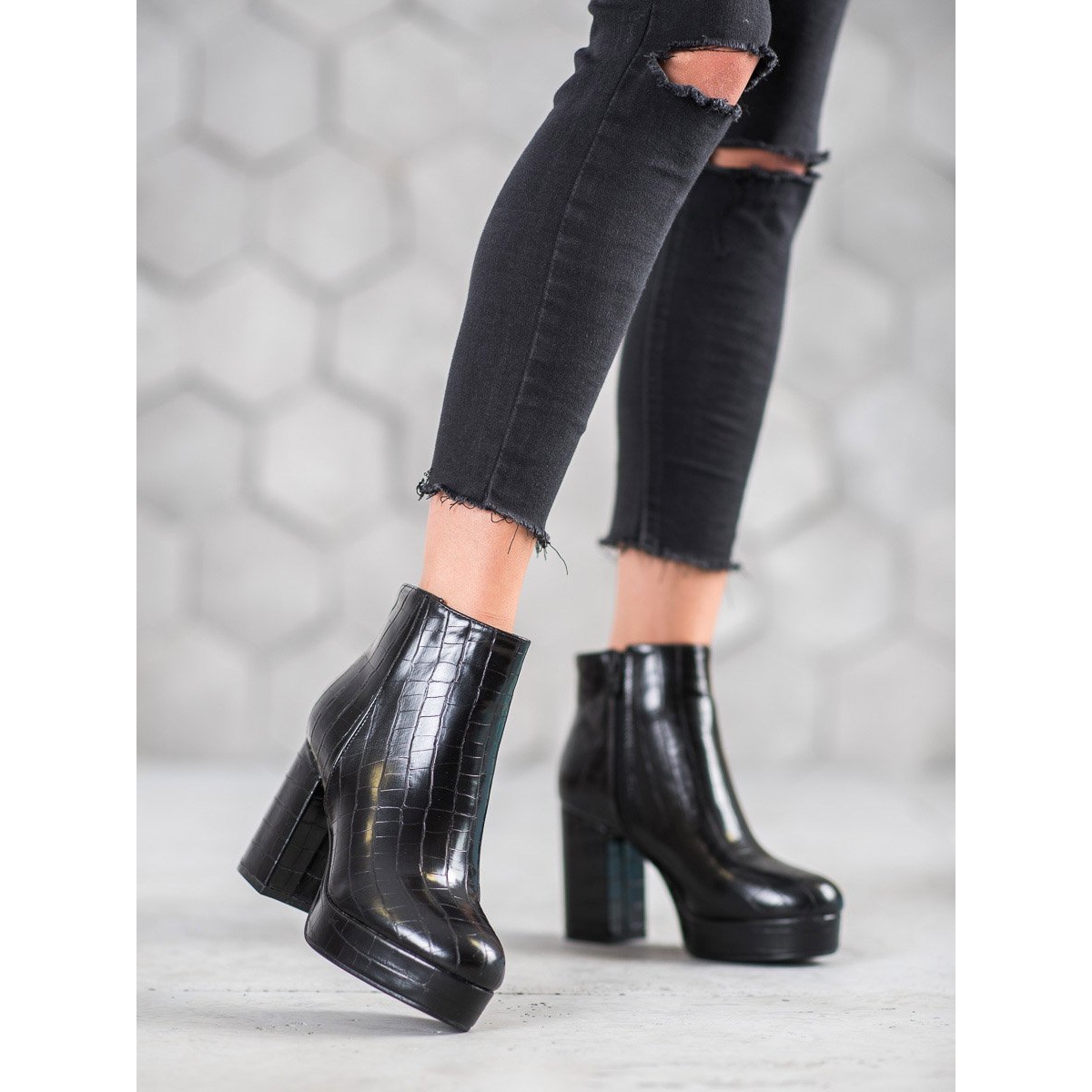 Das Obermaterial mit einem attraktiven geprägten Tiermuster verleiht Charakter und zieht die Aufmerksamkeit auf sich, sodass jedes Styling einzigartig ist. Knöchelhohe Stiefel passen perfekt zum Freizeit- und Modestil und sind eine tolle Ergänzung sowohl zu alltäglichen als auch zu eleganteren Outfits.