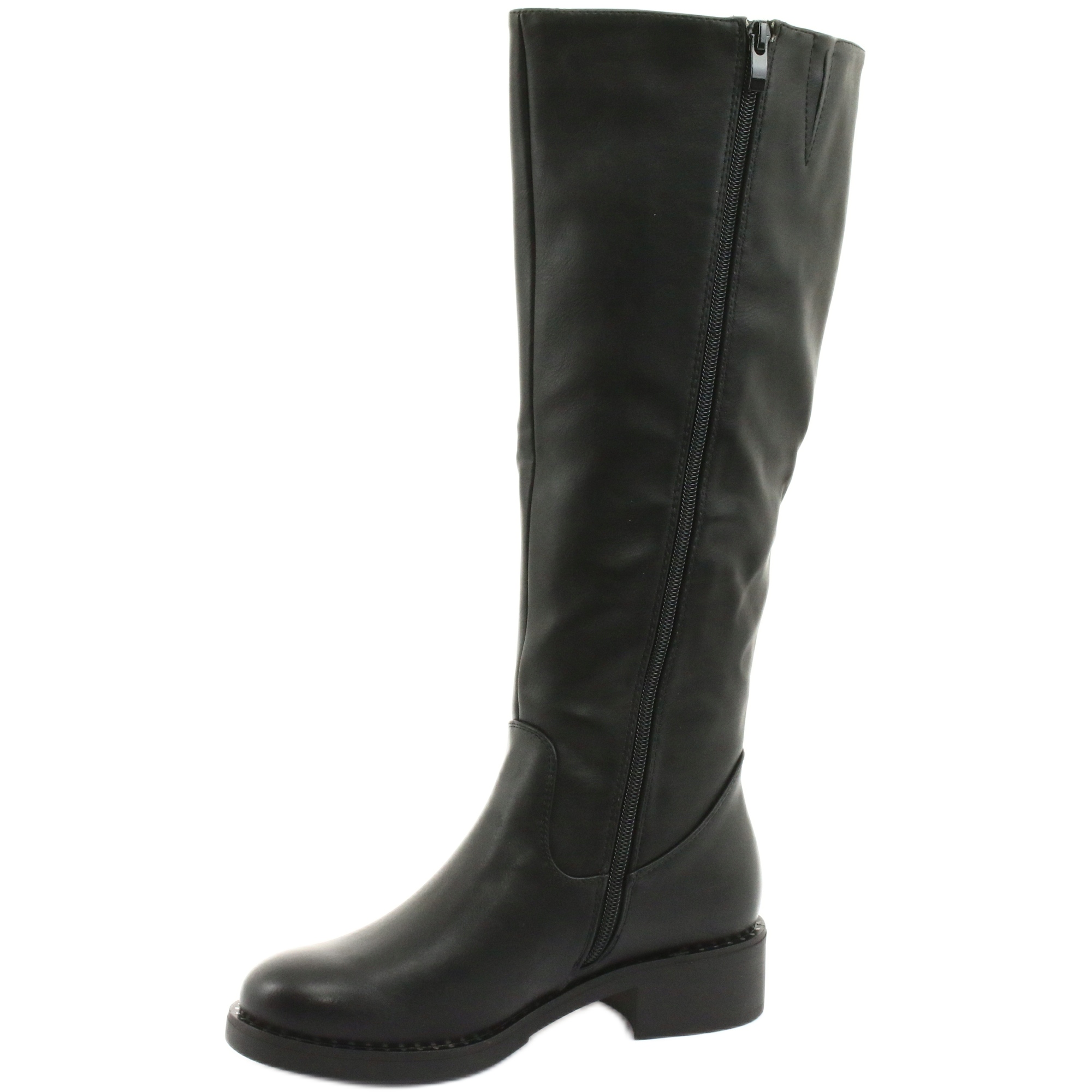 Sergio Leone 280 Stiefel sind eine ausgezeichnete Wahl für Frauen, die Wert auf Mode und Komfort legen. Ohne Muster, in klassischem Schwarz sind sie die perfekte Ergänzung für jede Garderobe. Dank des Reißverschlusses geht das An- und Ausziehen der Schuhe schnell und einfach. Diese Stiefel werden sicherlich zu einem Lieblingselement jedes Stylings. Darüber hinaus sind sie durch die Originalverpackung des Herstellers ein ideales Geschenk für einen lieben Menschen.