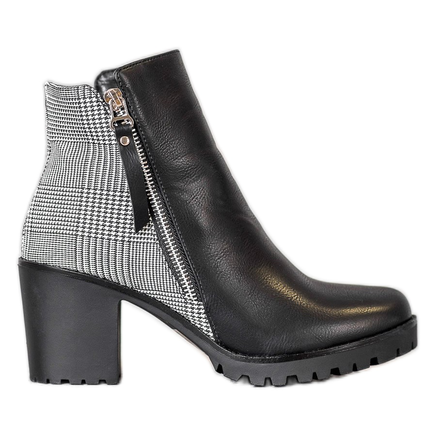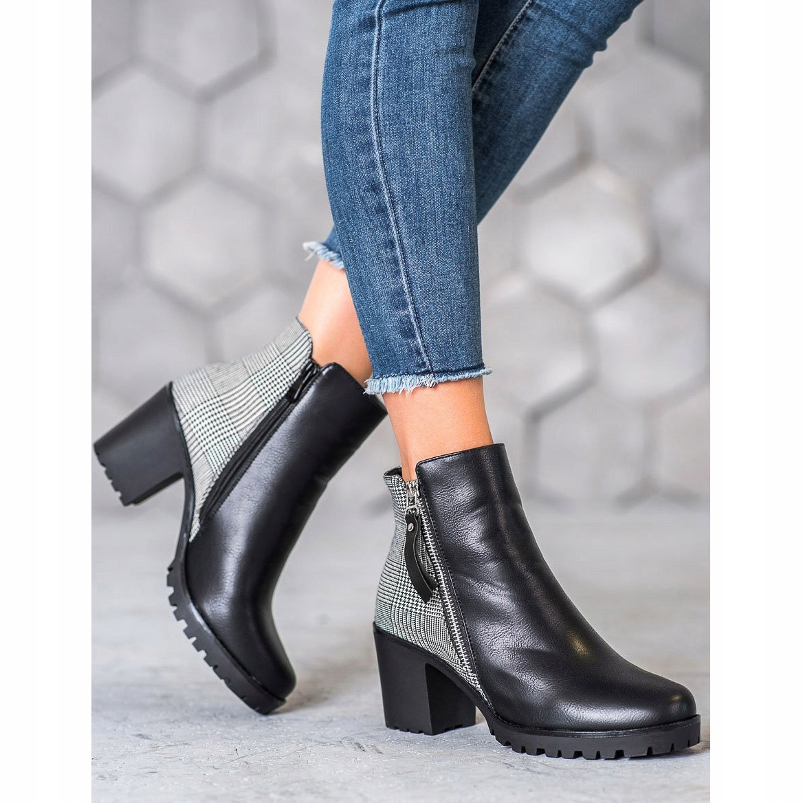 Entdecken Sie Eleganz und Komfort mit hochhackigen Stiefeletten der Marke Filippo! Diese schwarzen Damen-Stiefeletten mit einem Schaft, der über den Knöchel reicht, sind die perfekte Wahl für kältere Tage. Die Vorderseite der Schuhe sieht klassisch in einem tiefen Schwarz aus, während die Rückseite mit einem modischen schwarz-weißen Karomuster verziert ist, was ihnen einen einzigartigen Charakter verleiht.