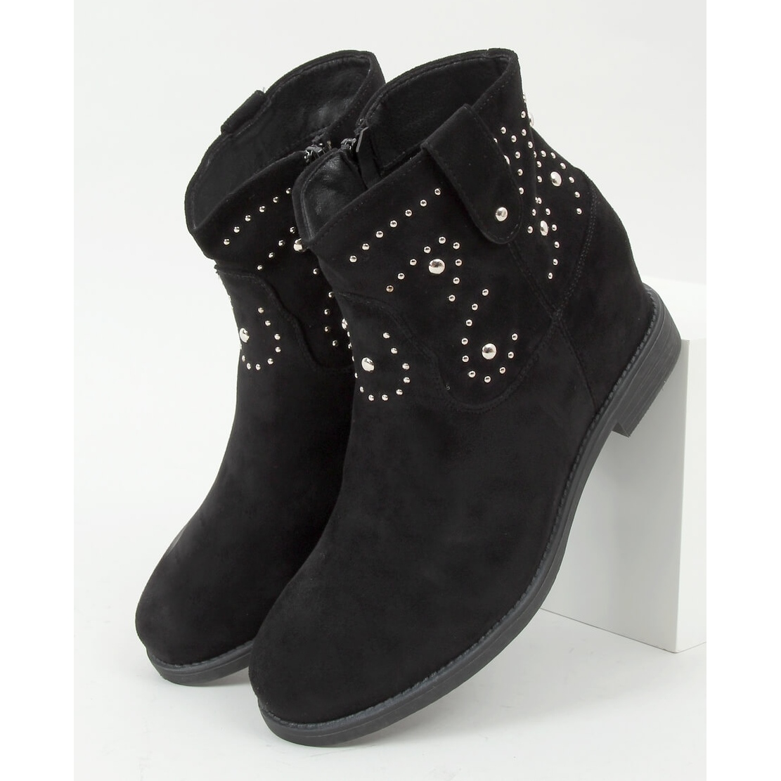 Odessa Black Stiefeletten mit verstecktem Keilabsatz sind die perfekte Wahl für Frauen, die Wert auf einen modischen Look gepaart mit Komfort legen. Ihr elegantes Schwarz und das einzigartige Design mit einem mit Nieten verzierten Obermaterial machen sie zu einer perfekten Ergänzung zu vielen Alltagsstilen. Dank der Keilhöhe von 6 cm verlängern diese Schuhe die Beine optisch und sorgen gleichzeitig für Stabilität und Tragekomfort.