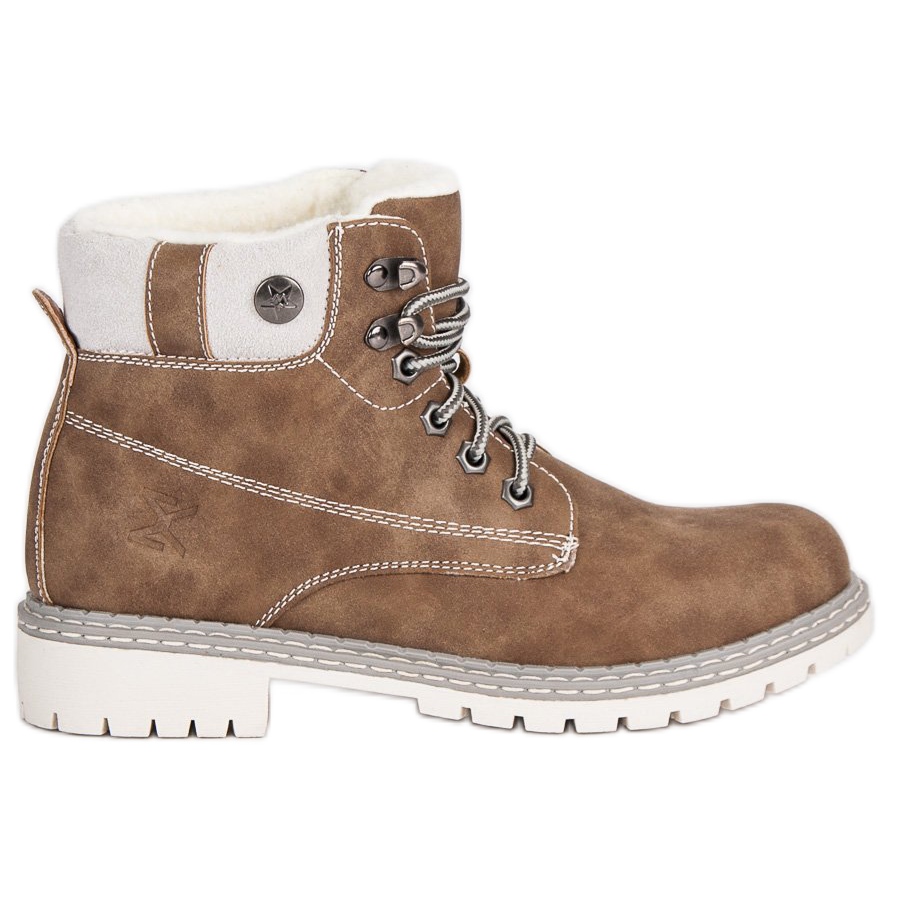 Trapperstiefel zeichnen sich durch solide Schlaufen aus, die für Stabilität und Komfort beim Schnüren sorgen. Ein zarter 3,5-cm-Absatz sorgt für etwas Eleganz und die weiße Sohle in Kombination mit weißen Nähten sorgt für Leichtigkeit und femininen Charme. Dank einer flachen Sohle aus strapazierfähigem Kunststoff bieten die Schuhe hervorragenden Halt auf schwierigen Untergründen.